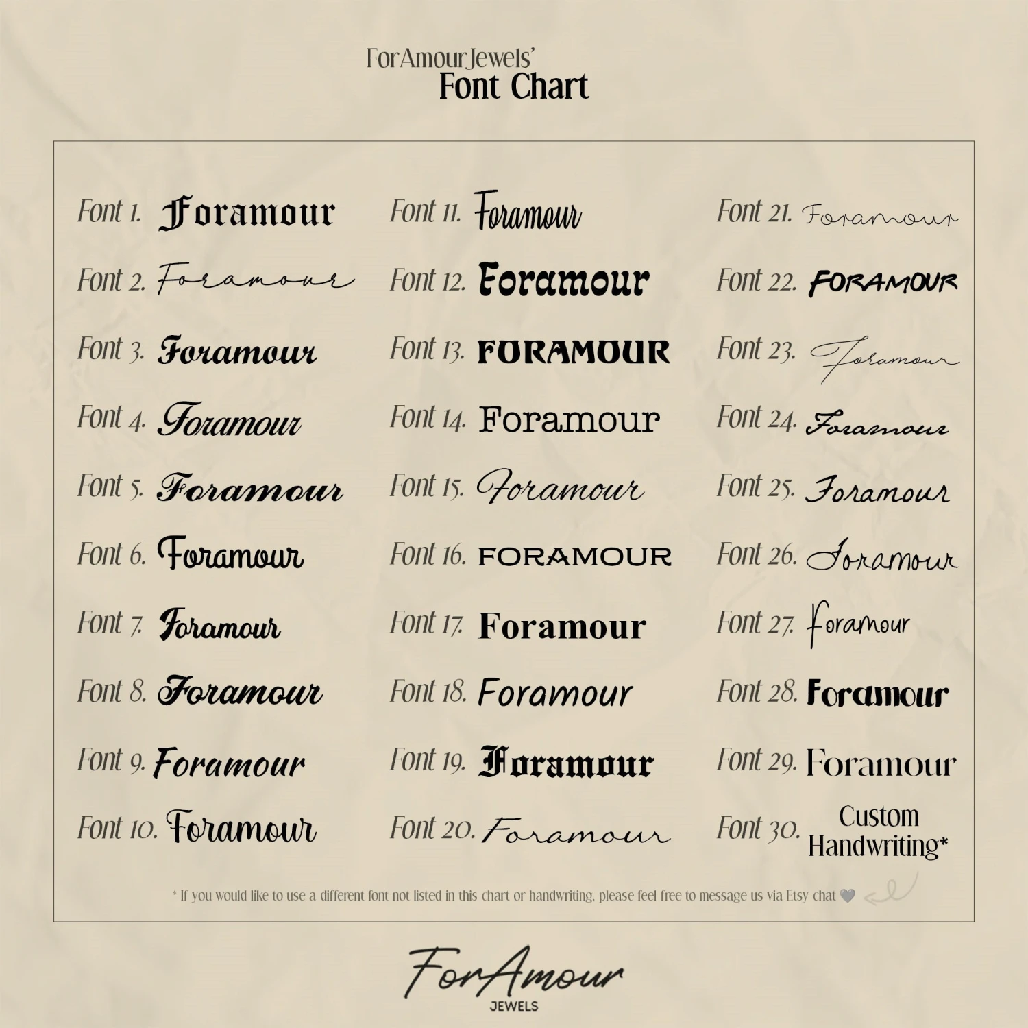 • You don’t have to stick to the fonts or designs we offer. We can create custom designs based on your requests. Please feel free to share your ideas to us via message; we would be glad to assist you in turning your visions into reality.