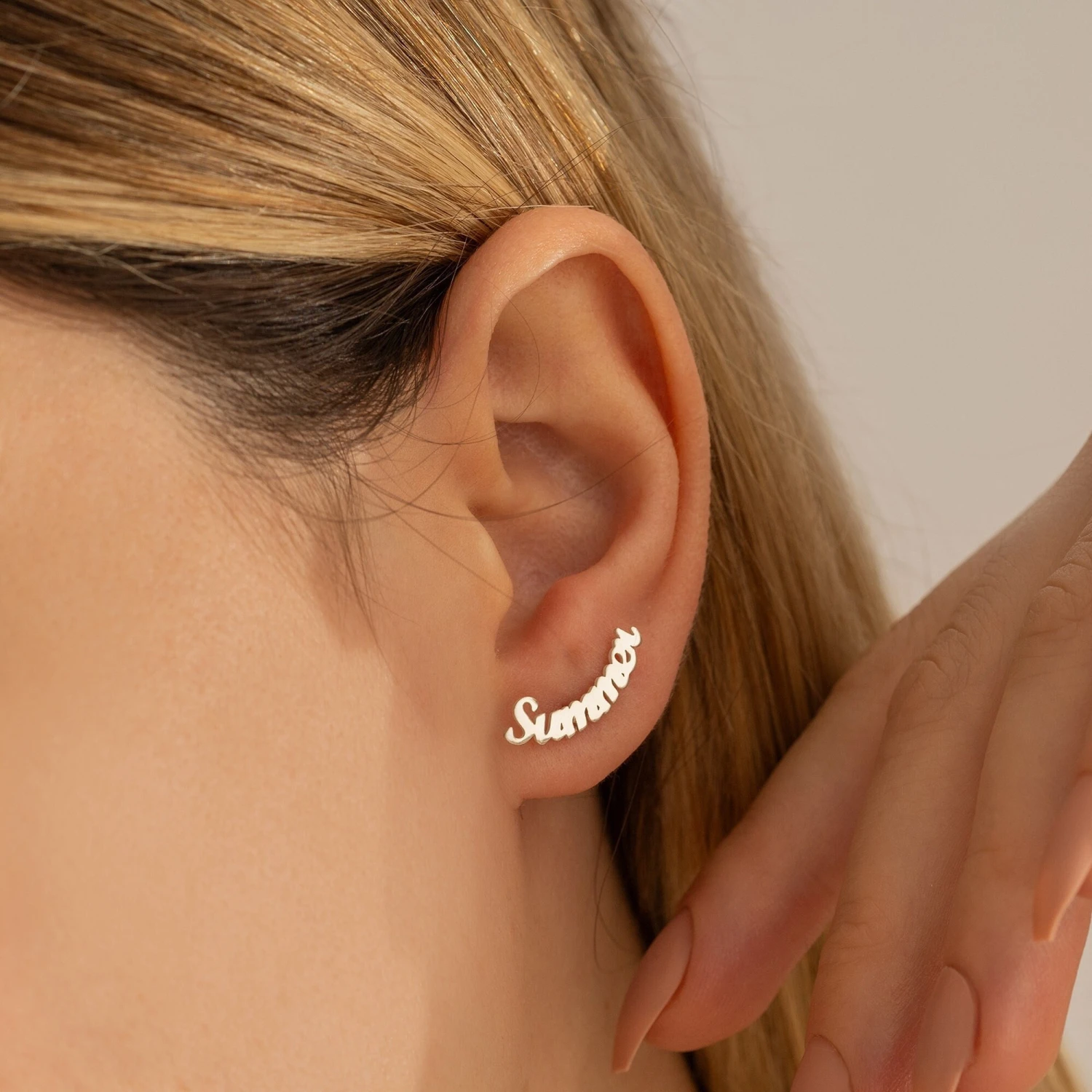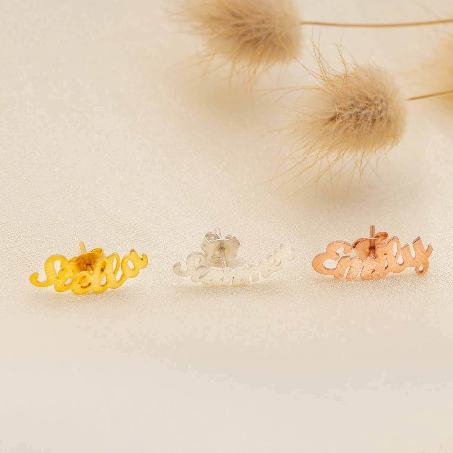 14K Gold Name Earrings – Personalized Earrings – Stud Earring – Handmade Custom Name Earrings – Minimalist – Gift for Her – Christmas Gifts