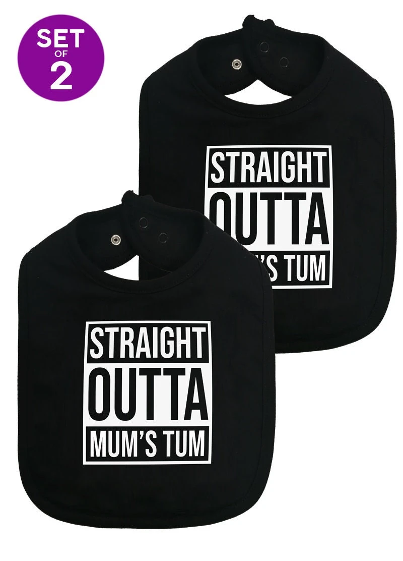 2 x AWARD WINNING Funny Baby Bibs / Hip Hop Bib STRAIGHT OUTTA MUM’S TUM