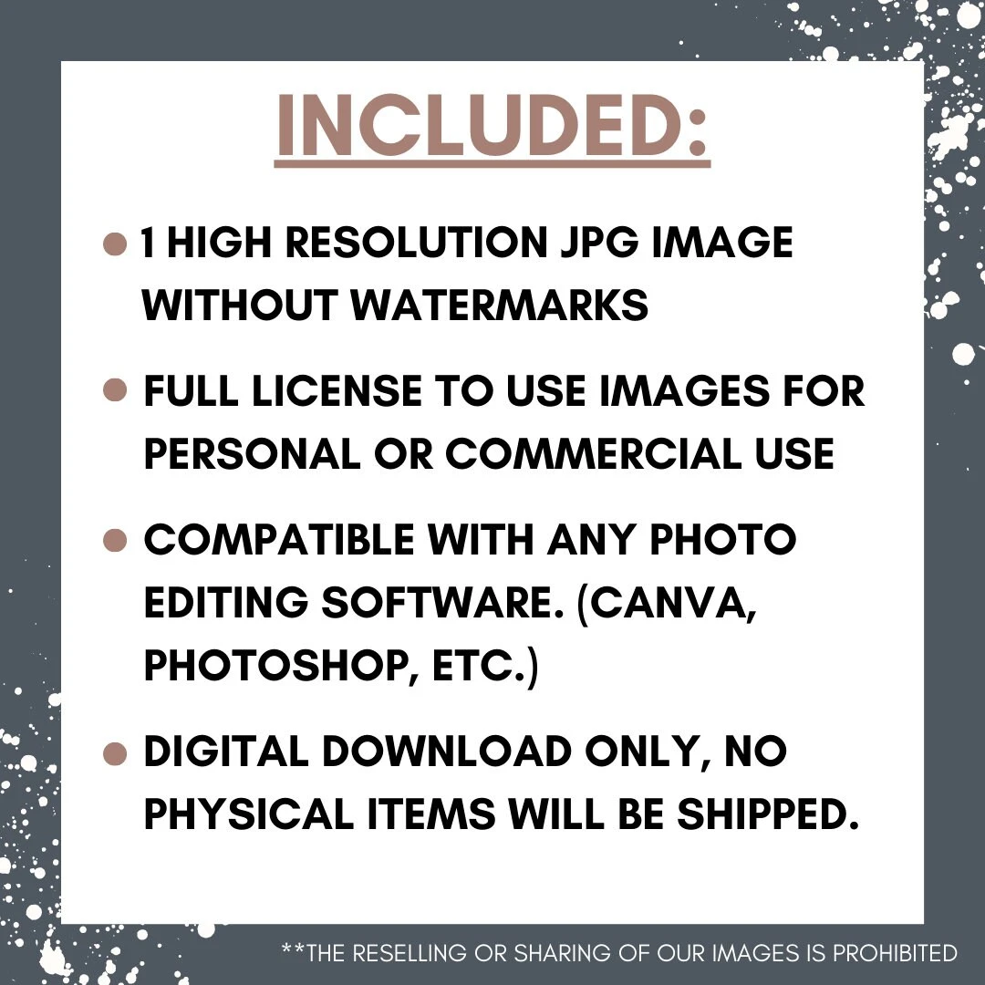 1 (one) high-resolution JPG file. The image will be ready to use and will be free of all watermarks and branding. The file is compatible with all photo editing software and ready for you to place your logo / graphic on.