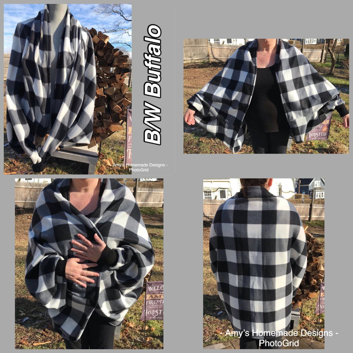They keep you cozy warm all season. Summer cool nights, Sitting by the fire roasting marshmallows in the fall, sitting by the window watching the snow fall….these light weight Fleece wraps will keep you cozy warm all season long!!!
