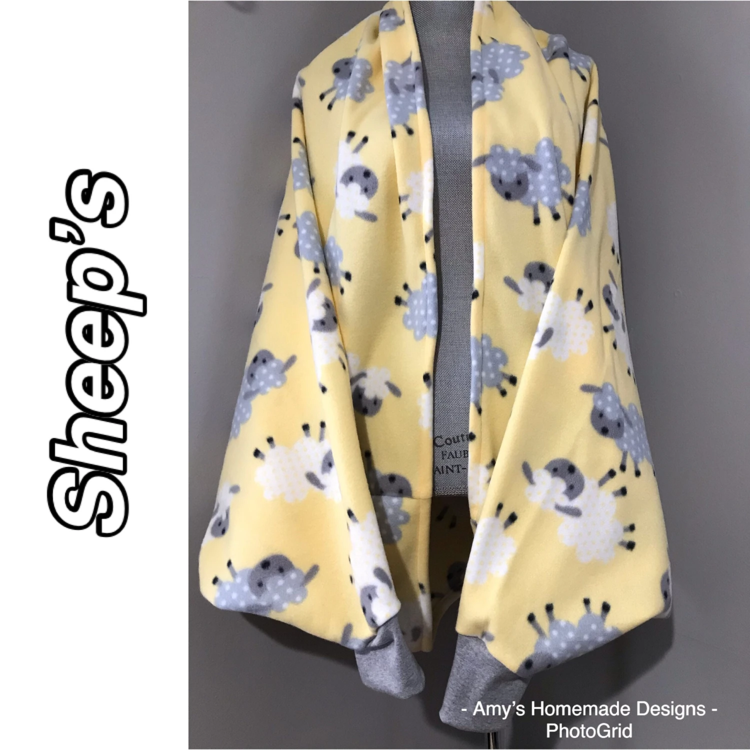 Light weight Fleece Shawl with cocoon style Sleeves with cuffs.