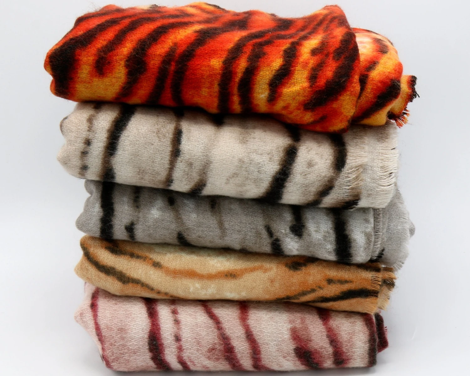 All Natural Scarf, Winter Scarf, No Cruelty Fashion, Soft Christmas Gift, Stocking Stuffer, Tiger Print Shawl, Cruelty Free Gift For Women