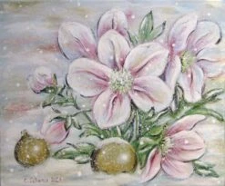 Christmas Roses In The Snow 60cmx50cm – Glittering Flower Painting In Shabby Chic Look On Canvas