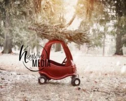 Holiday Christmas Tree Little Car Children’s Portrait Outside For Photographers – Digital Backdrop