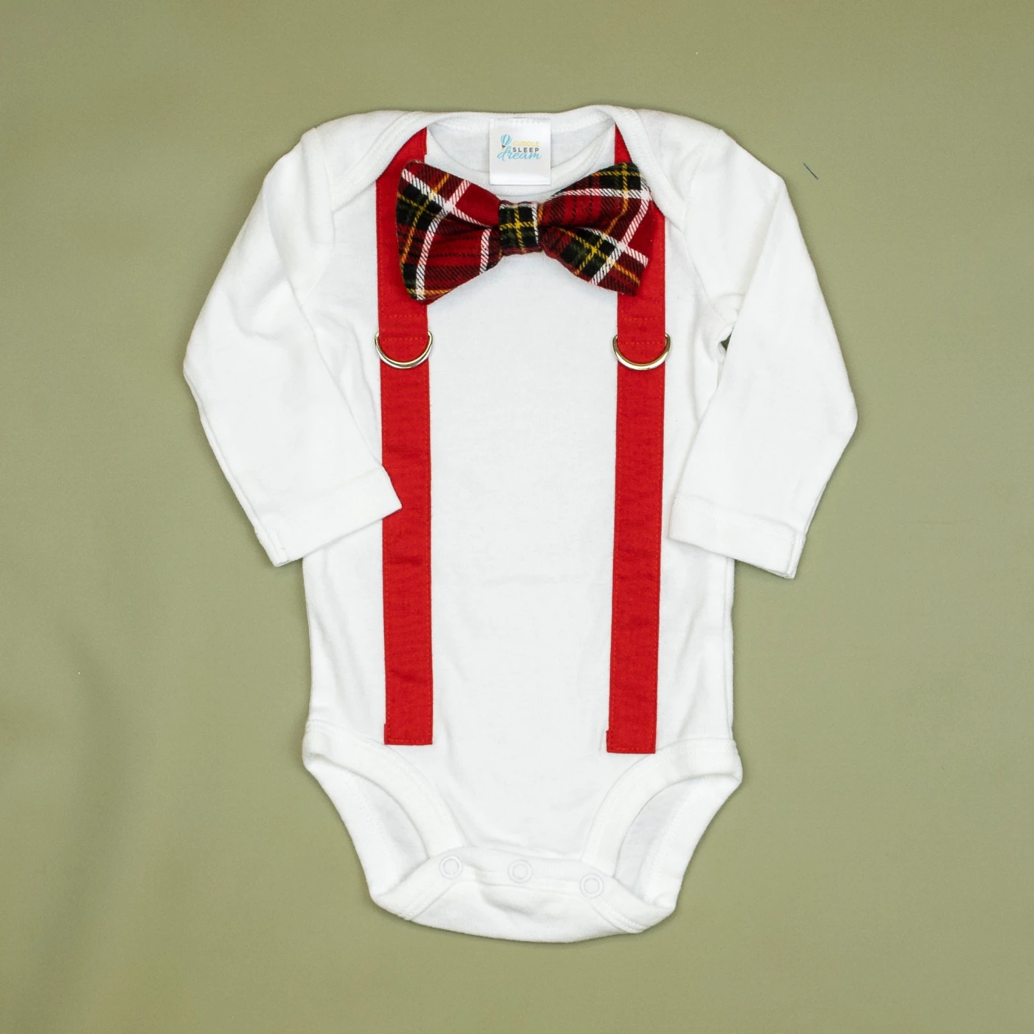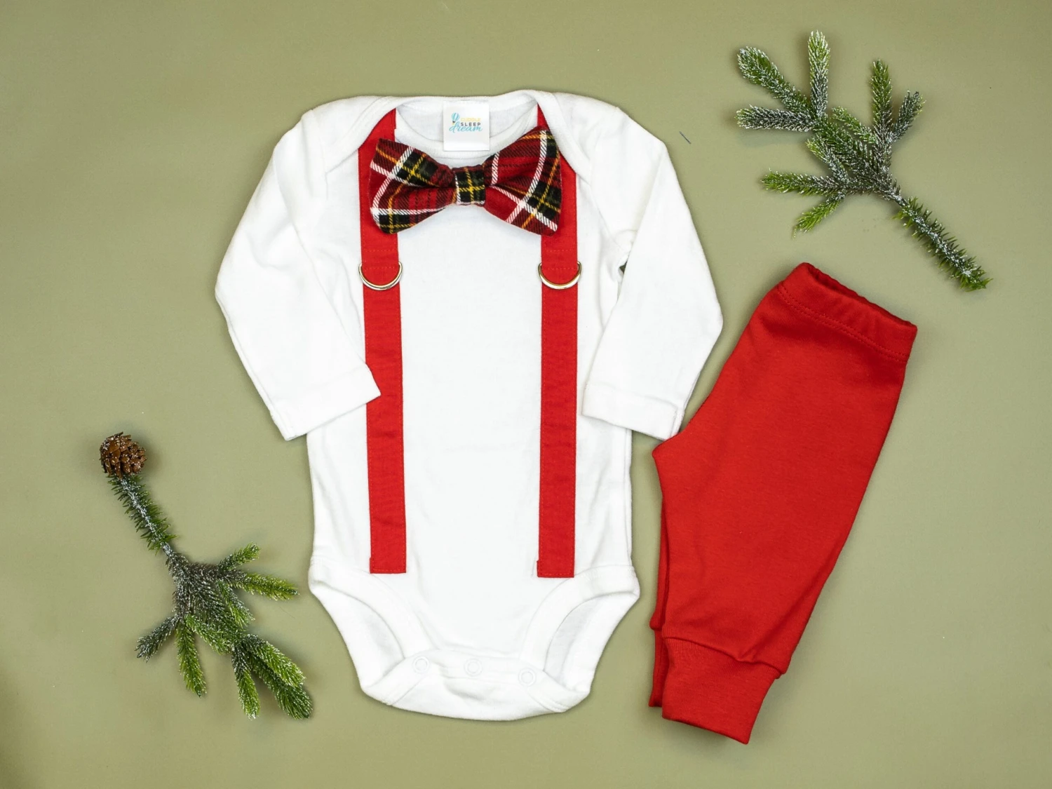 Baby Boy 1st Christmas Outfit. Baby Boy Tie And Suspenders. Infant Bowtie. Newborn Christmas Outfit.