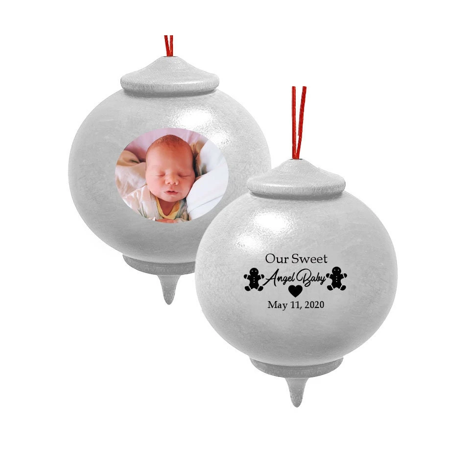 Introducing the Baby Gingerbread White Photo Bulb Ornament Urn: A Heartwarming Memorial for Your Little One this Christmas