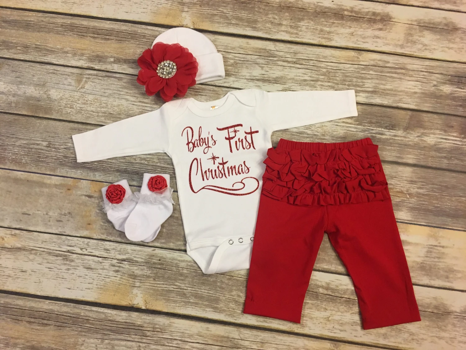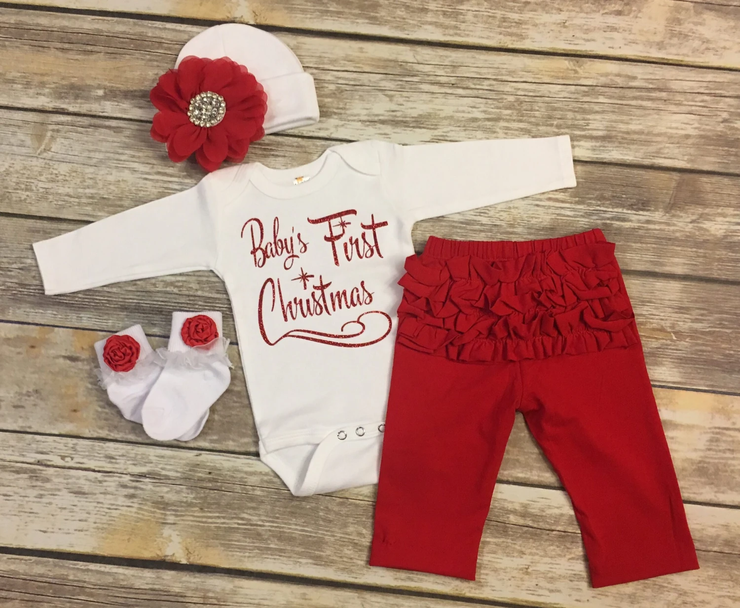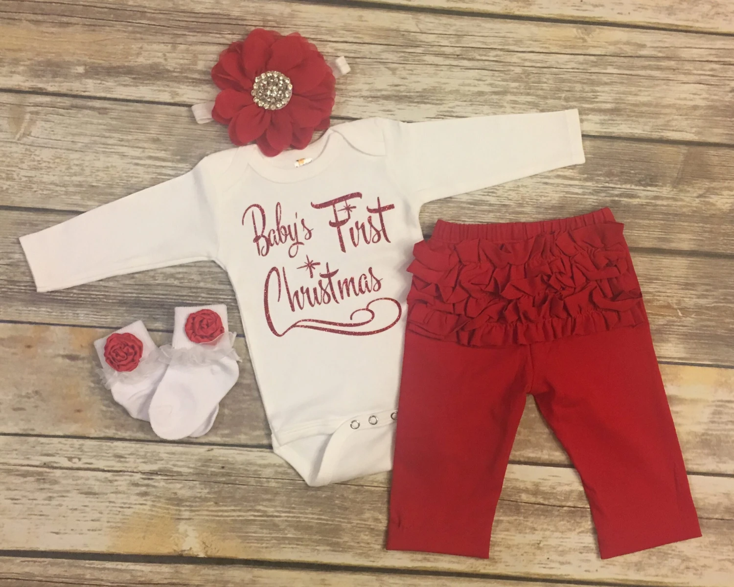 Baby Girls Christmas, Babys First Christmas Outfit, First Holiday Outfit, Free Personalization, Newborn Holiday Outfit, Baby Shower Gift