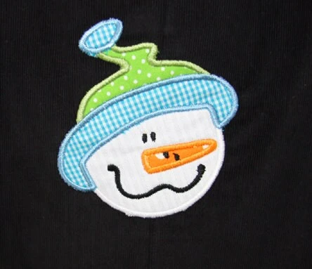 Baby snowman outfit is a black pin wale soft corduroy and can come plain, with snowman or with snowman and mongoram.