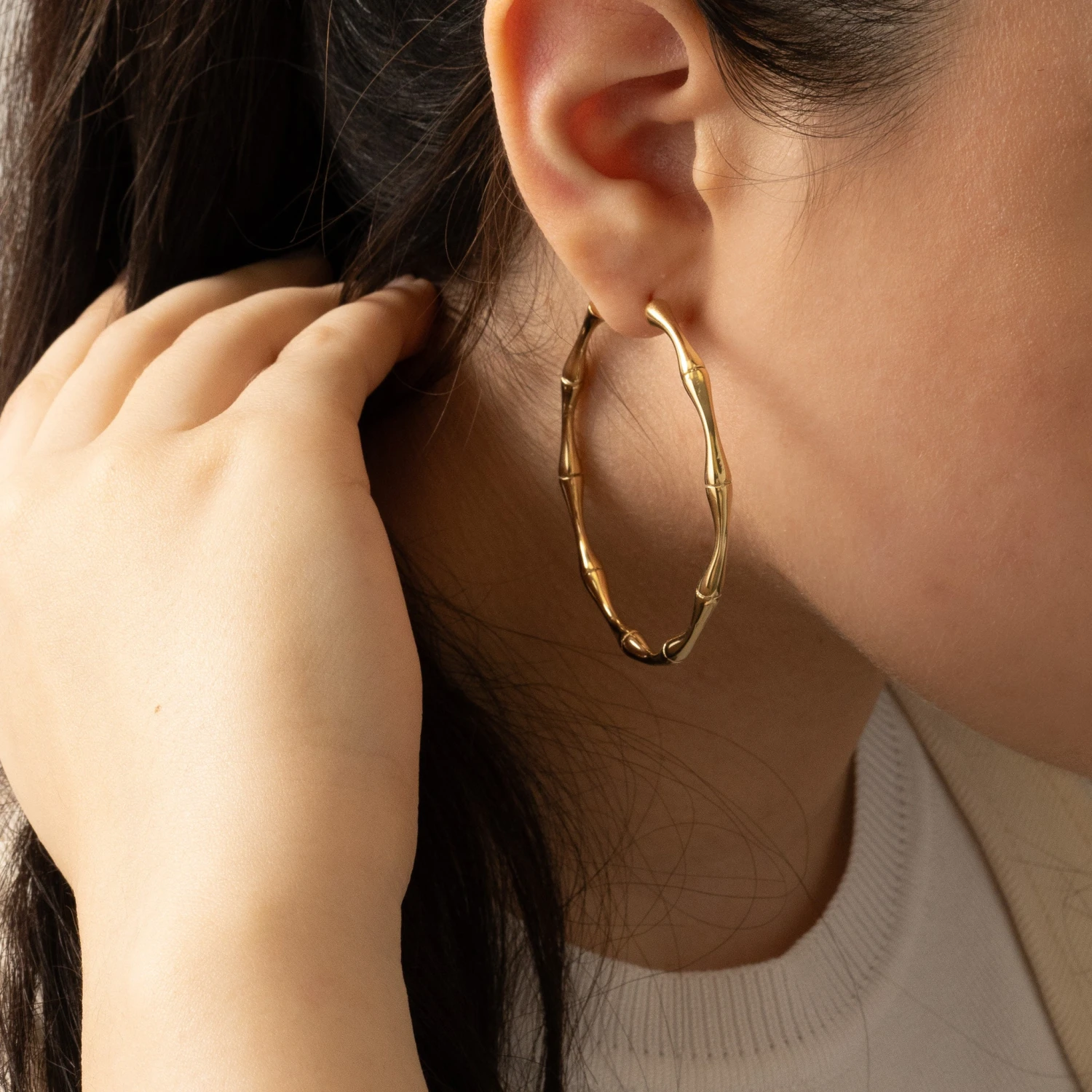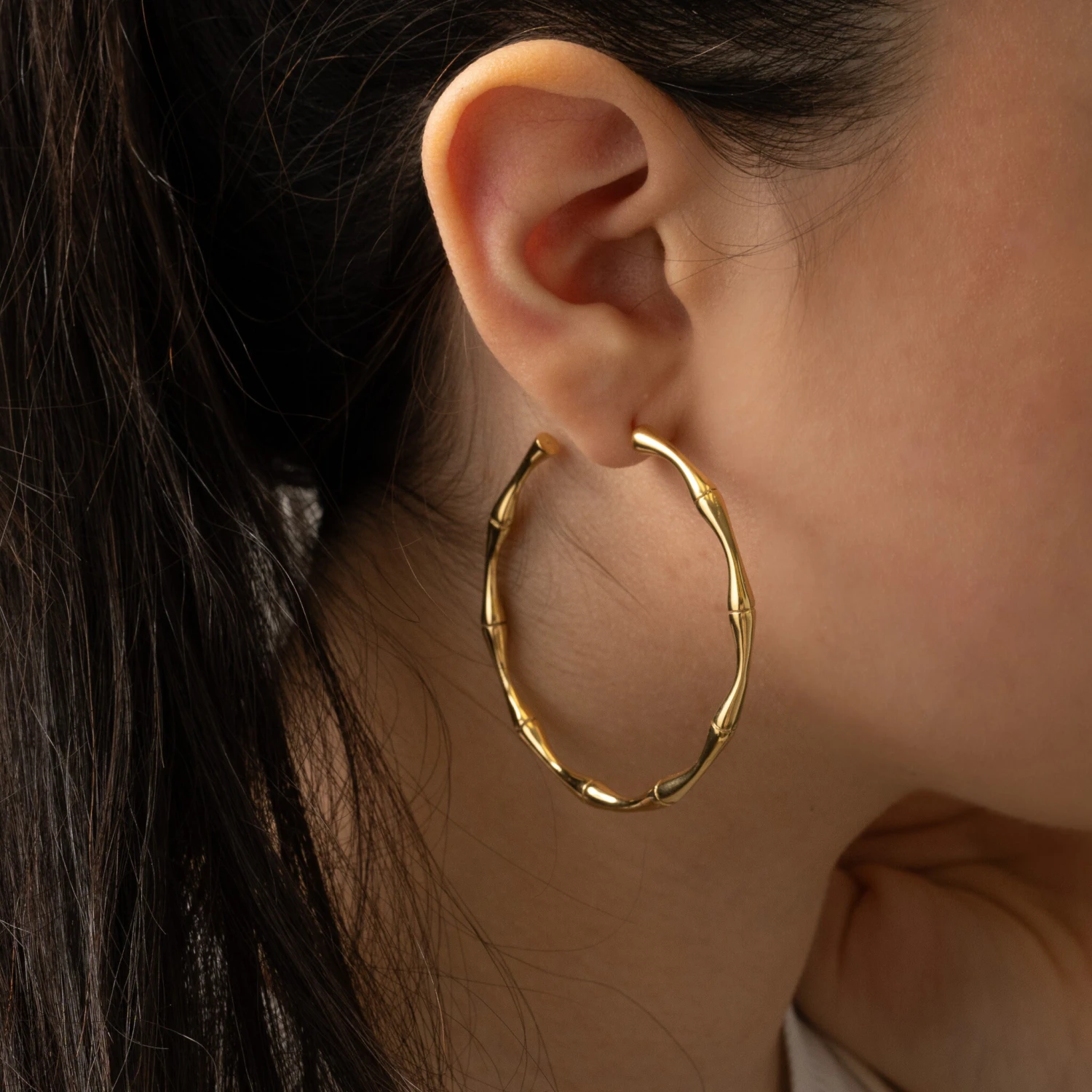 Elevate your look effortlessly with these chic Bamboo Hoop Earrings. Skillfully designed to blend timeless elegance with modern flair, these versatile hoops are your go-to accessory for any occasion, from casual brunches to formal events.