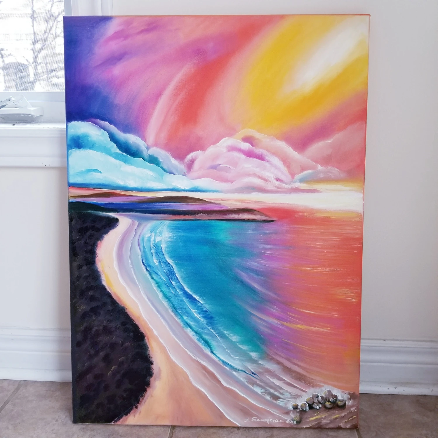 Beach. Christmas Gift. New Year Gift. Original Oil Painting on Canvas. Perfect Gift. Housewarming Gift. Wall Decoration. Home Decor. Wall Art. 20″ х 28″ (50.8 х 71.1 cm) 2019. Unframed. Ready to hang. Painted edges.