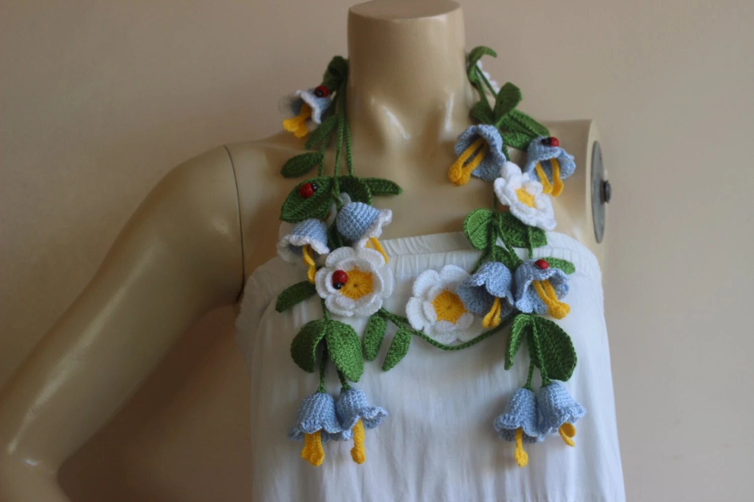 Be the first to review “Bell Crochet Scarf- Flower Lariat Necklace Scarf- Ladybug Scarf- Jewelry Scarf-Blue Bell And White Daisy Scarf-christmas Gift” Cancel reply