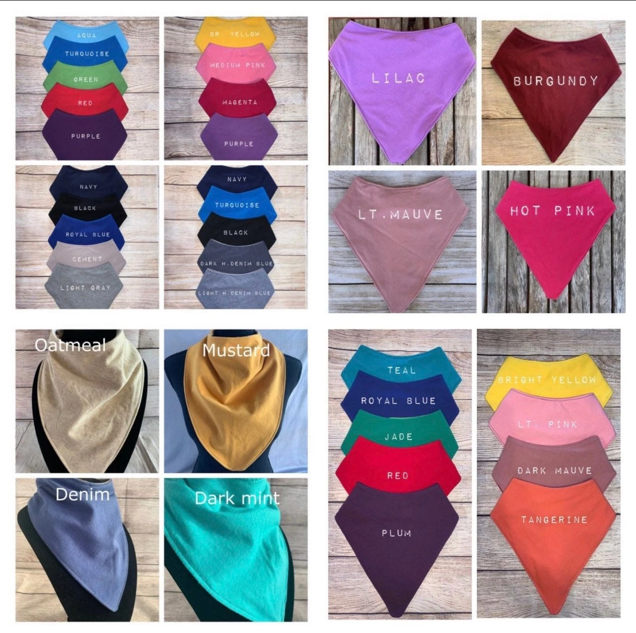 On back/reverse of designer fabric you can see complementary color to top fabric, different to each Droolie, so it is as you get 2 Droolies in 1, great to have more choices to match any of clothing and to any occasions/ holidays.