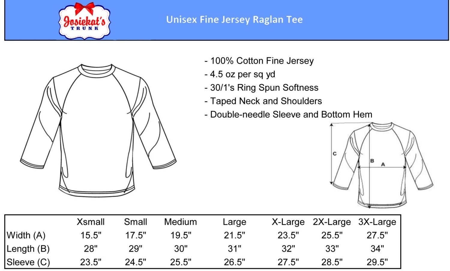 ****Please note: This is an adult unisex baseball tee. This fit differs from standard women’s or junior sizing. Please use the chest measurement to find the best fit and compare to a shirt that currently fits you for the best fit. Please use the size chart for best fit. Make sure the chest measurement will work with the size you normally wear and order accordingly. We do offer junior sizing on a limited basis. You can email us for availability.