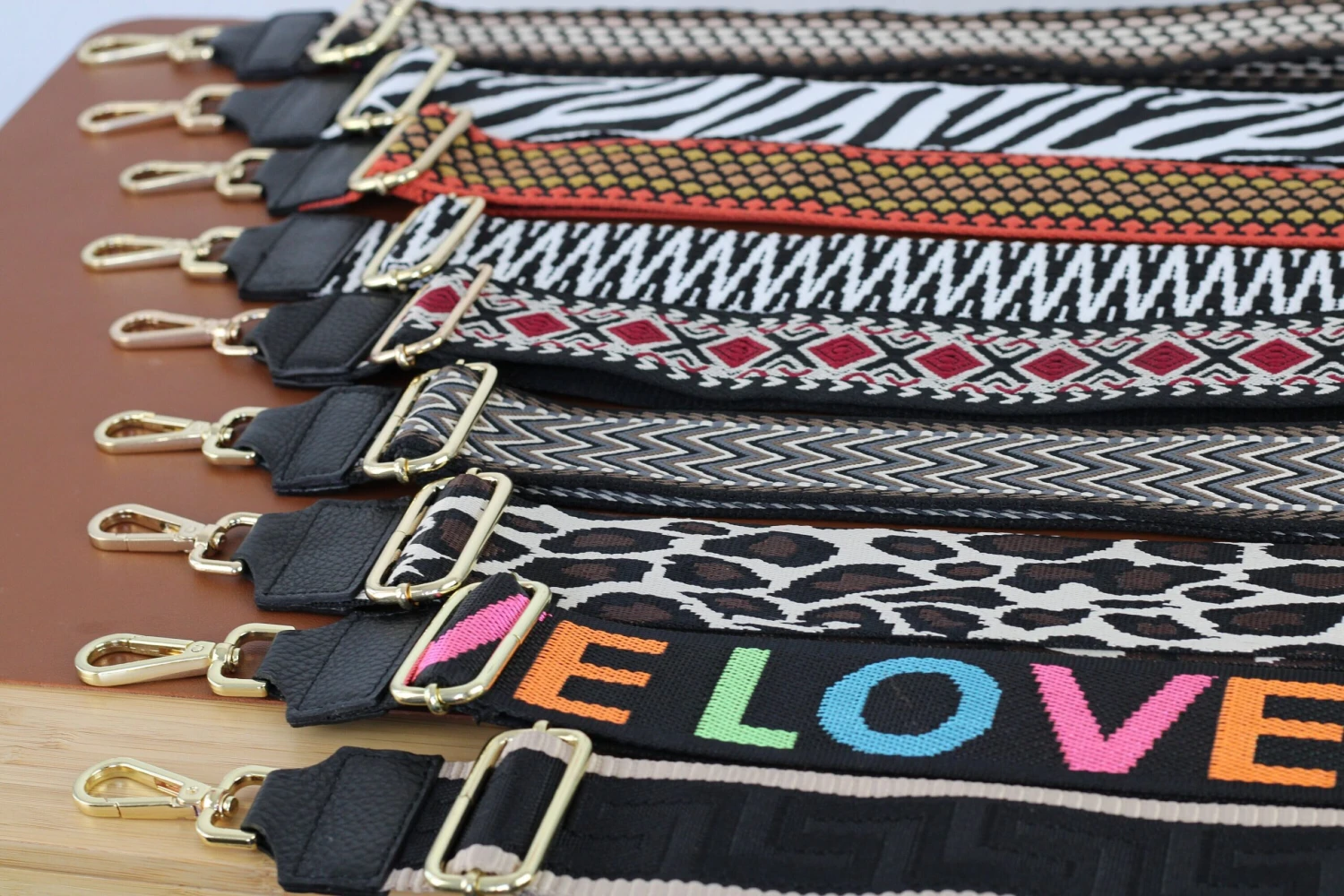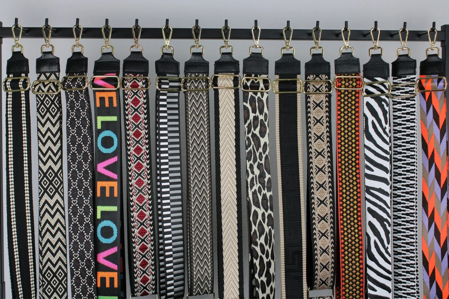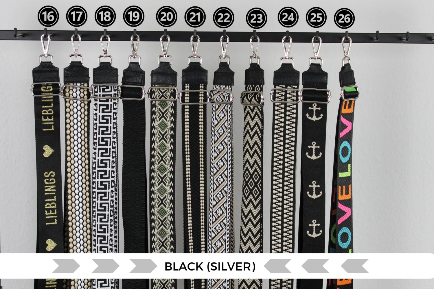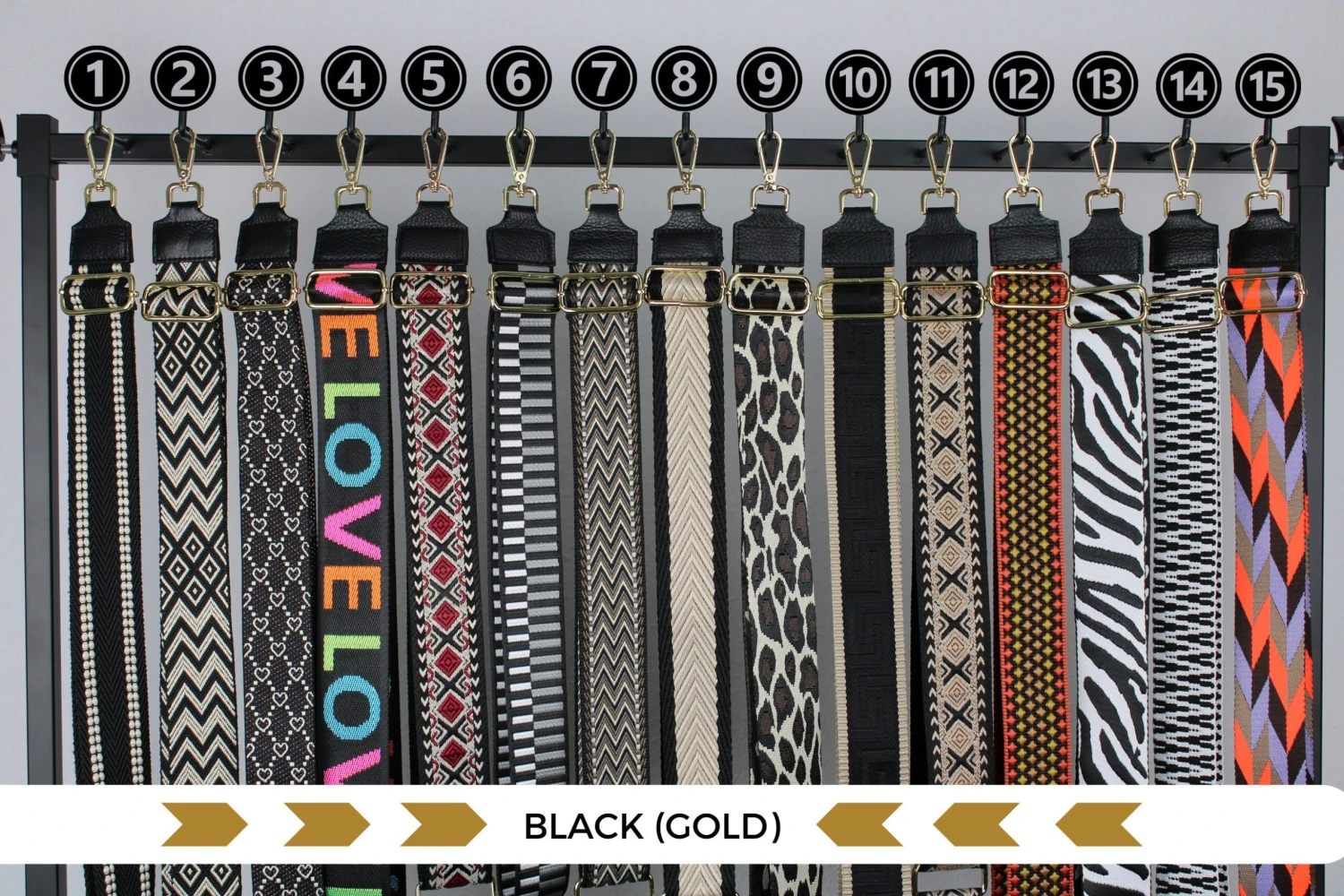 Black Leather Strap For Bags With Gold And Silver Hardware, Wide Strap Shoulder Strap, Camera Bag Straps, Fabric Bag Strap, Christmas Gift