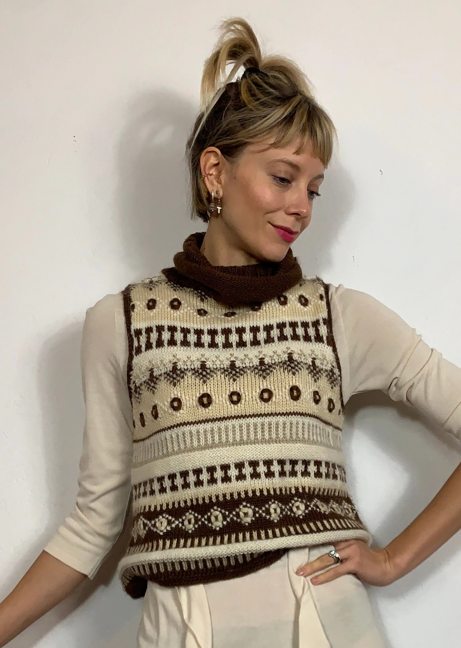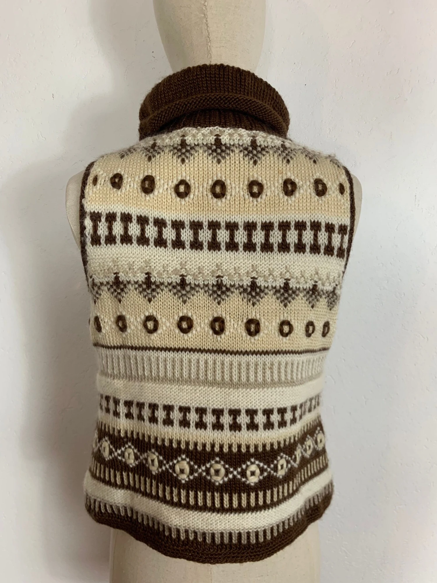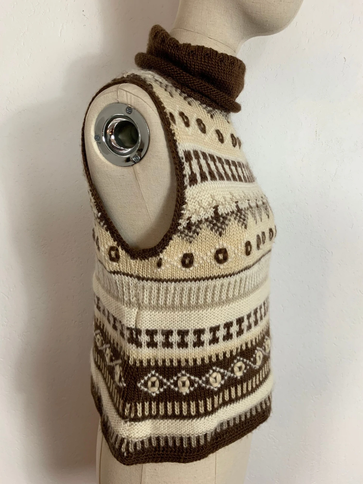 Beige and brown colors and a turtle neck gives this vest a super cool retro feeling.