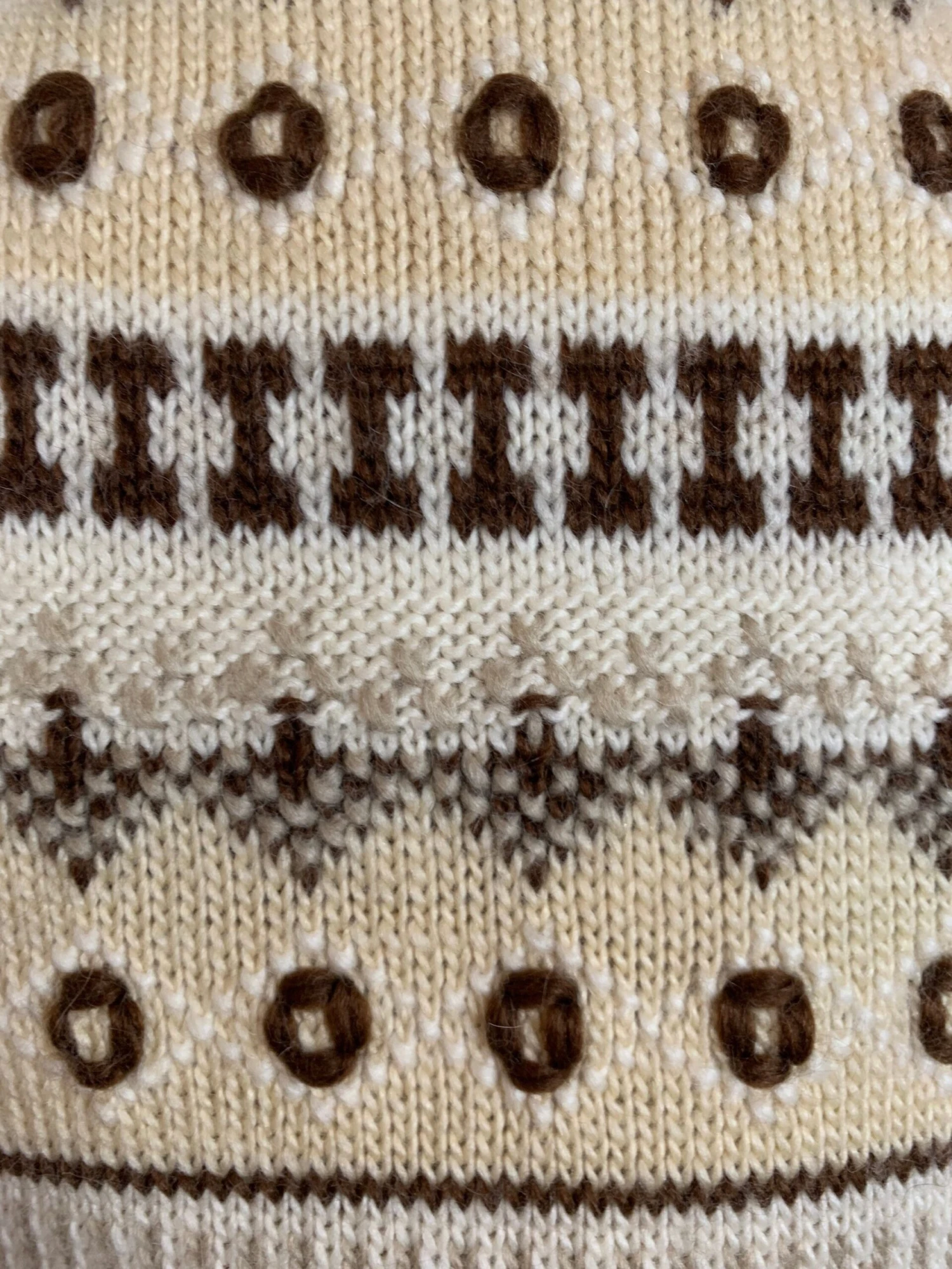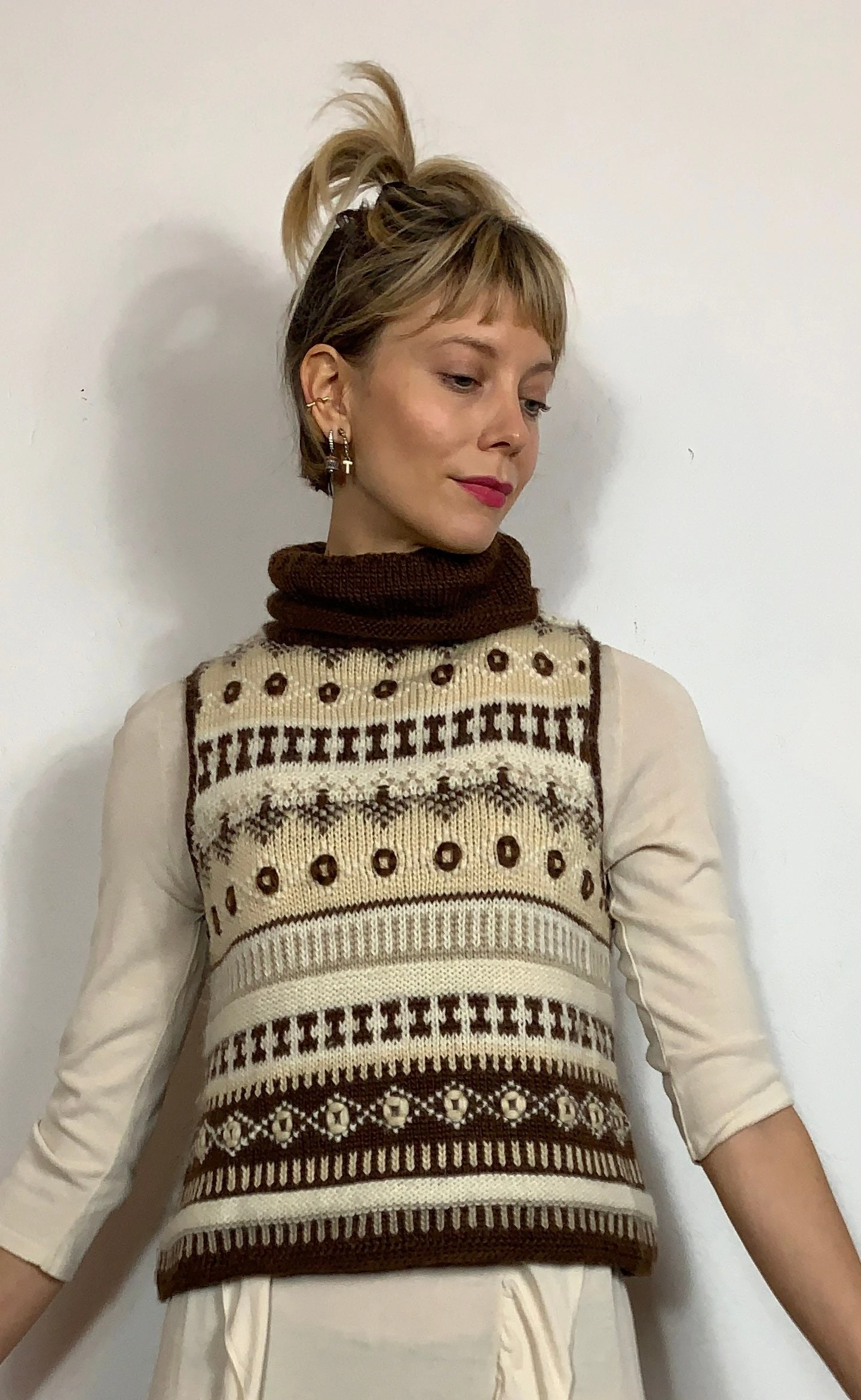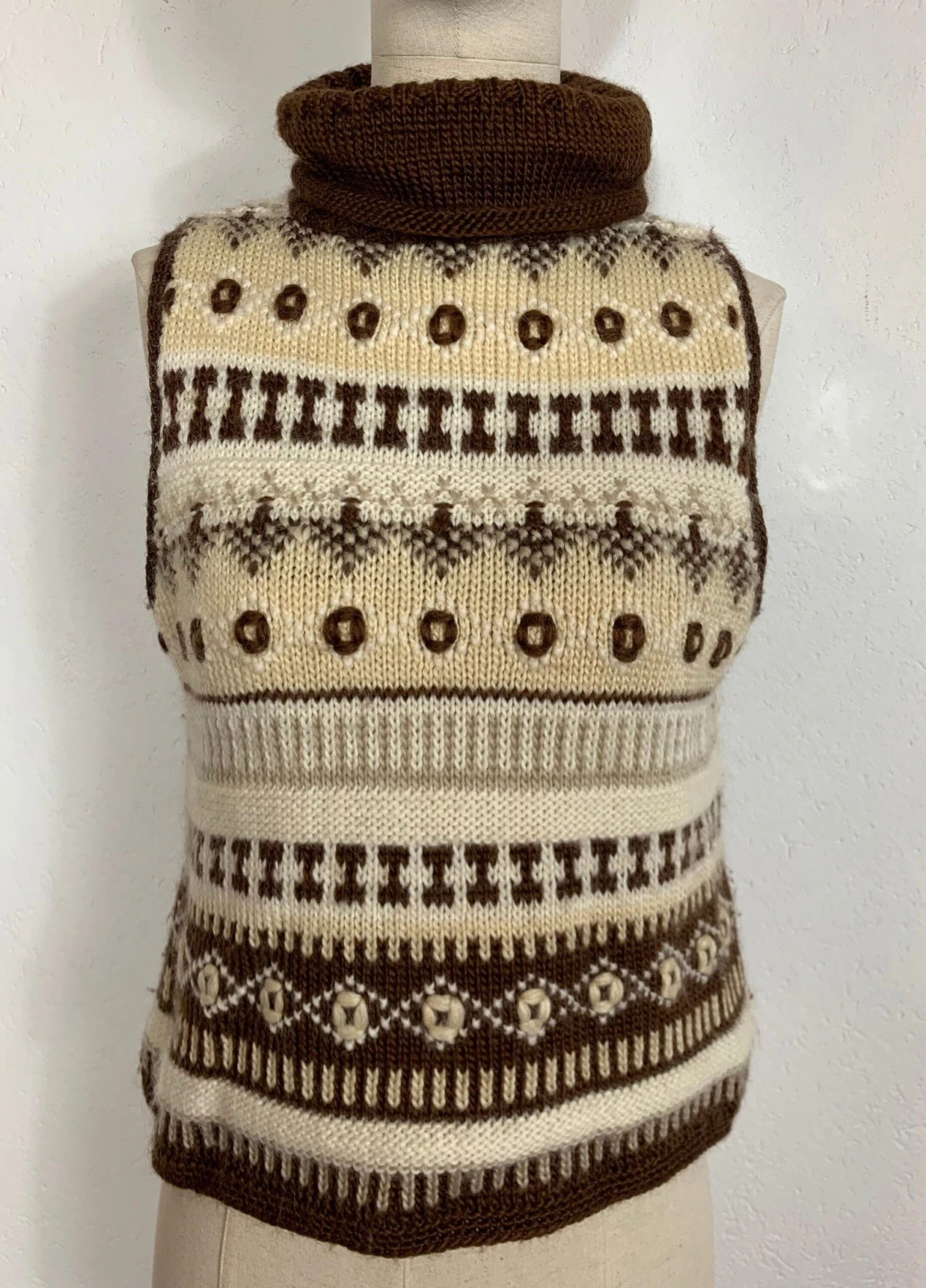 Beige and brown colors and a turtle neck gives this vest a super cool retro feeling.