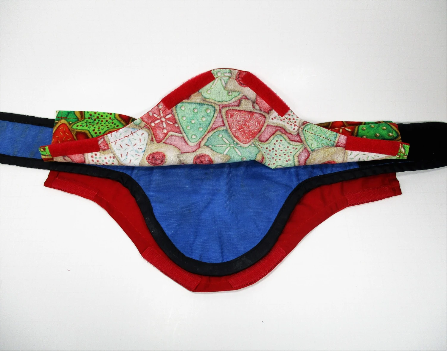 Do you need to wear lead for your job? Keep your neck clean and comfortable with one of my soft, fun novelty thyroid shield covers. Protects you from other people’s sweat and odor to avoid rashes and you can wash off any blood or barium splatter. I make each with 100 % pre washed cotton and it can be used with standard thyroid shields whether they are tethered/connected to your lead or not. It opens up on the bottom, folds over the thyroid shield and is secured with Velcro type hook & loop. It is finished with a coordinating colored bias tape trim along the bottom.