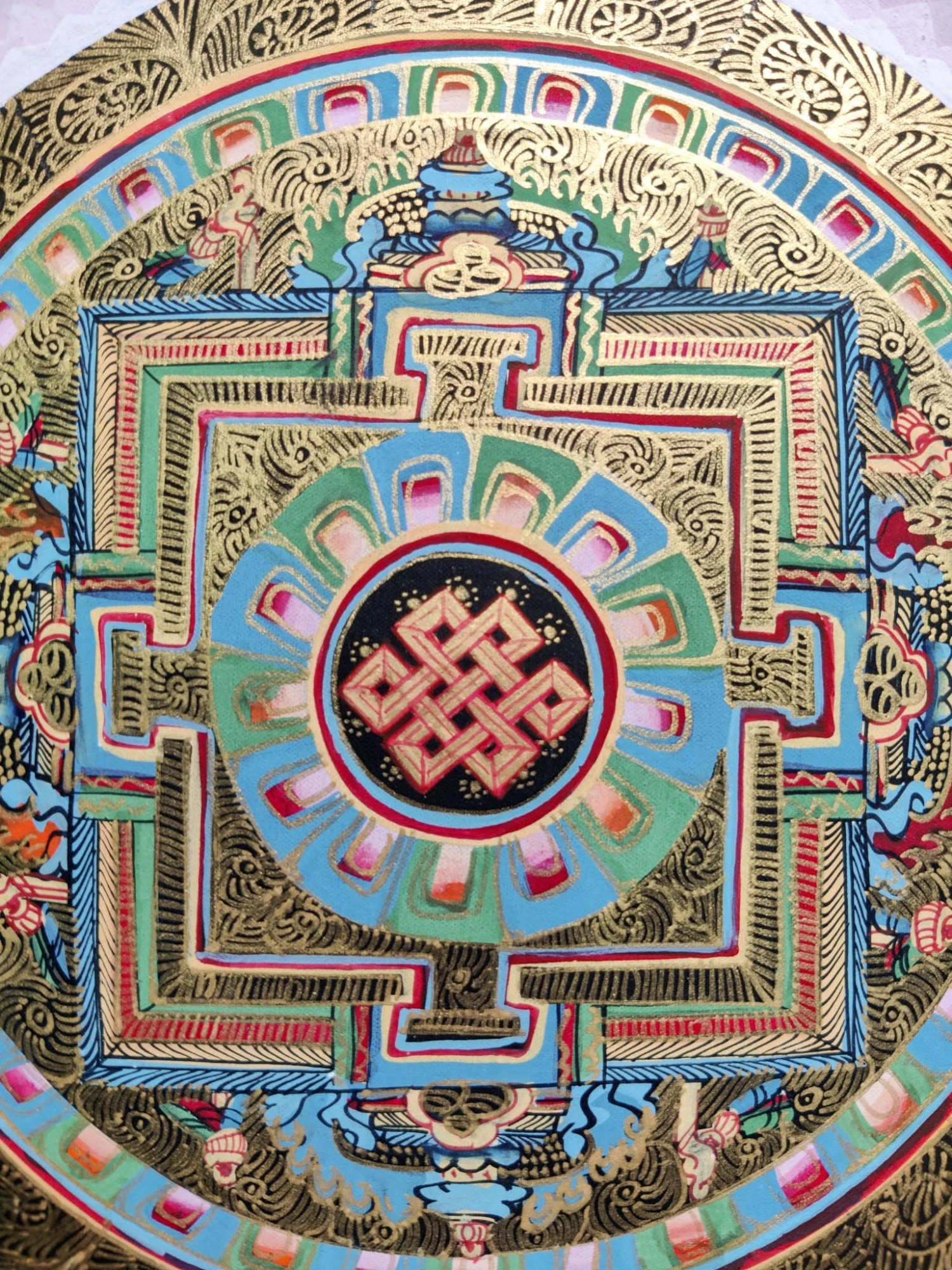Buddhists in general take mantra as a form of tool to meditate. They chant it to concentrate and increase their “Samadhi” in other words power to concentration. This mandala thangka wall hanging art can be a perfect tool for any spiritual person to meditate upon or to add it to your space for positivity.