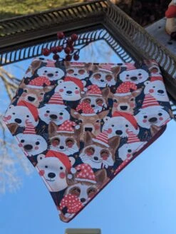 Christmas Squad / Doggy-Dana by JoJo’s is handmade using 100% cotton. This bandana is reversible, machine washable and it features a snap button. Due to the fact that they are handmade sizes may vary slightly, however, approximate sizes are as follows: