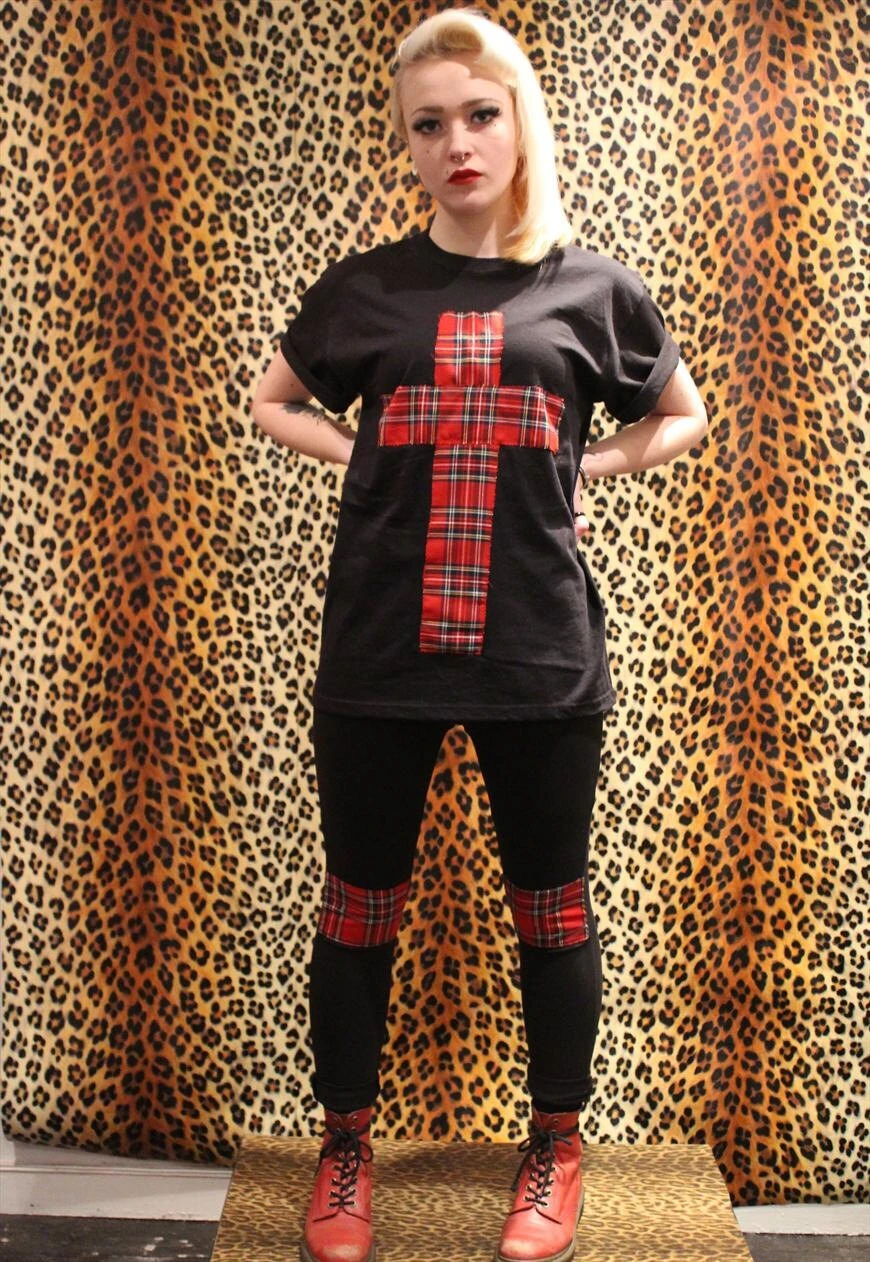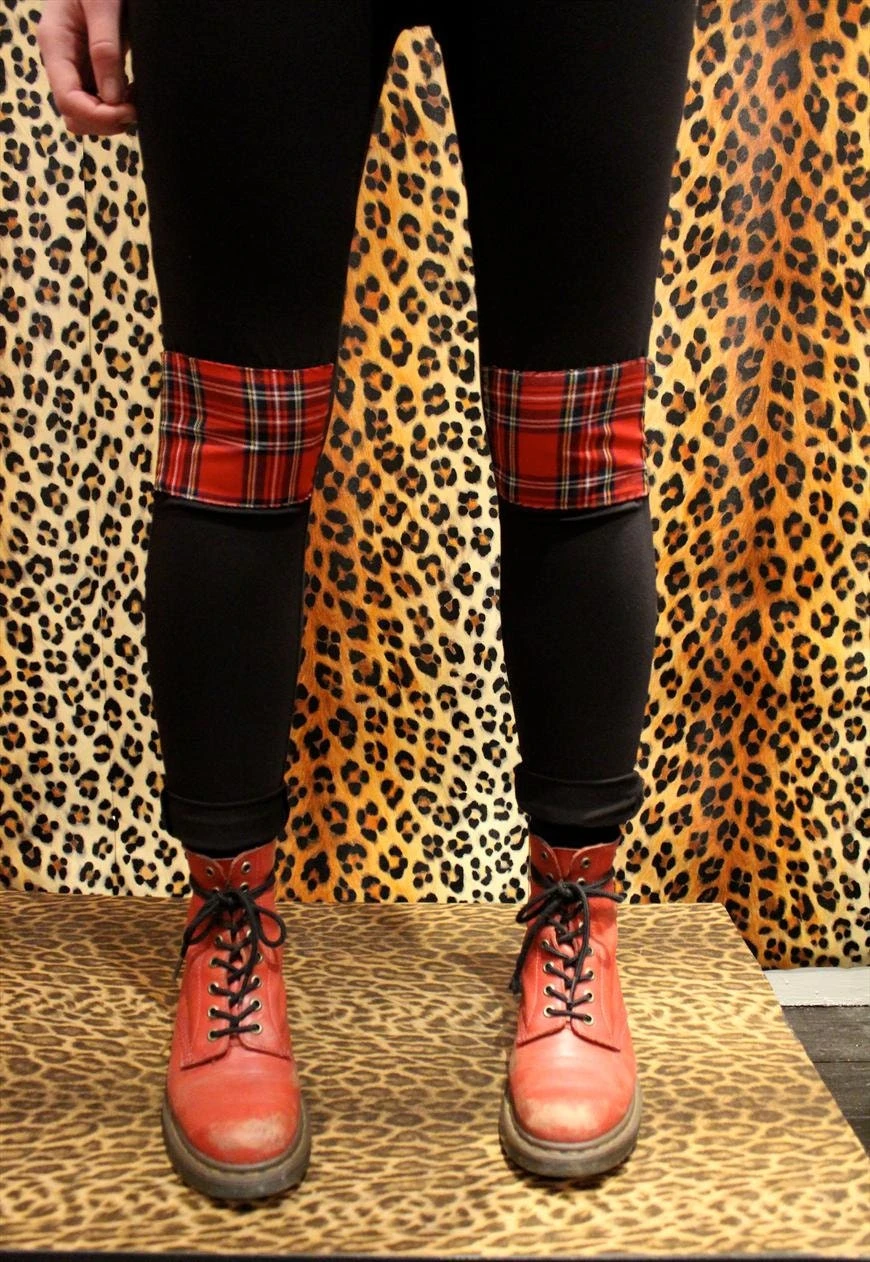 🖤 These fabulous leggings are very on trend and are part of our tartan collection. They are black stretch cotton with a hand sewn, plaid/ tartan panel on both knees. These leggings are very versatile and would look great with many of your outfits! They are also one of our best sellers and go with many other items in our collection!