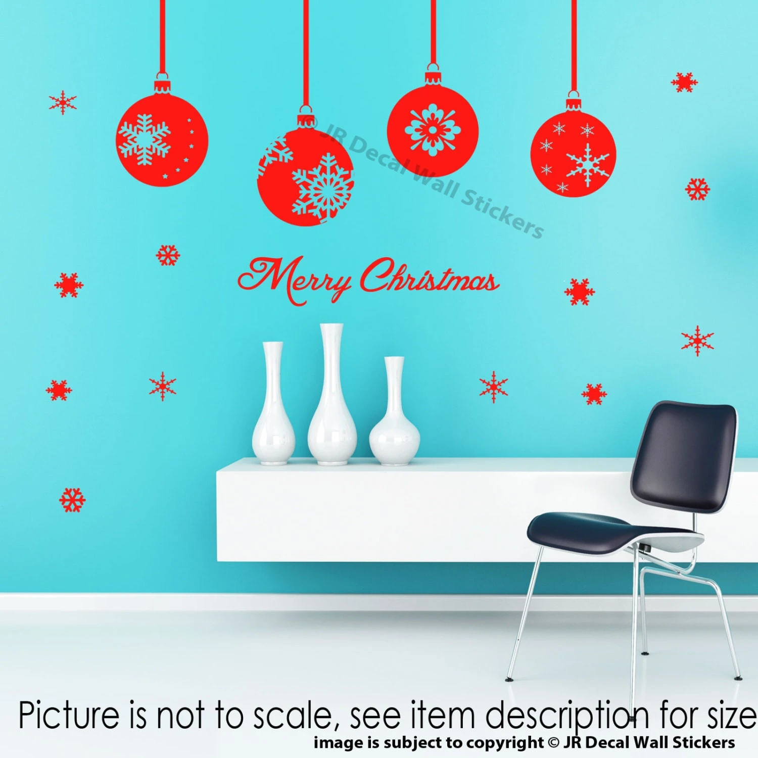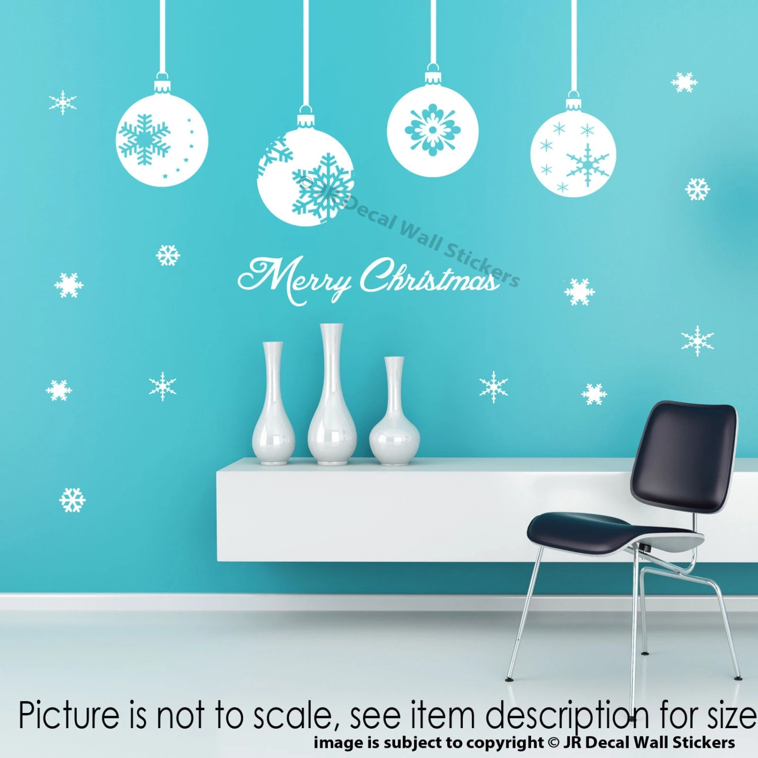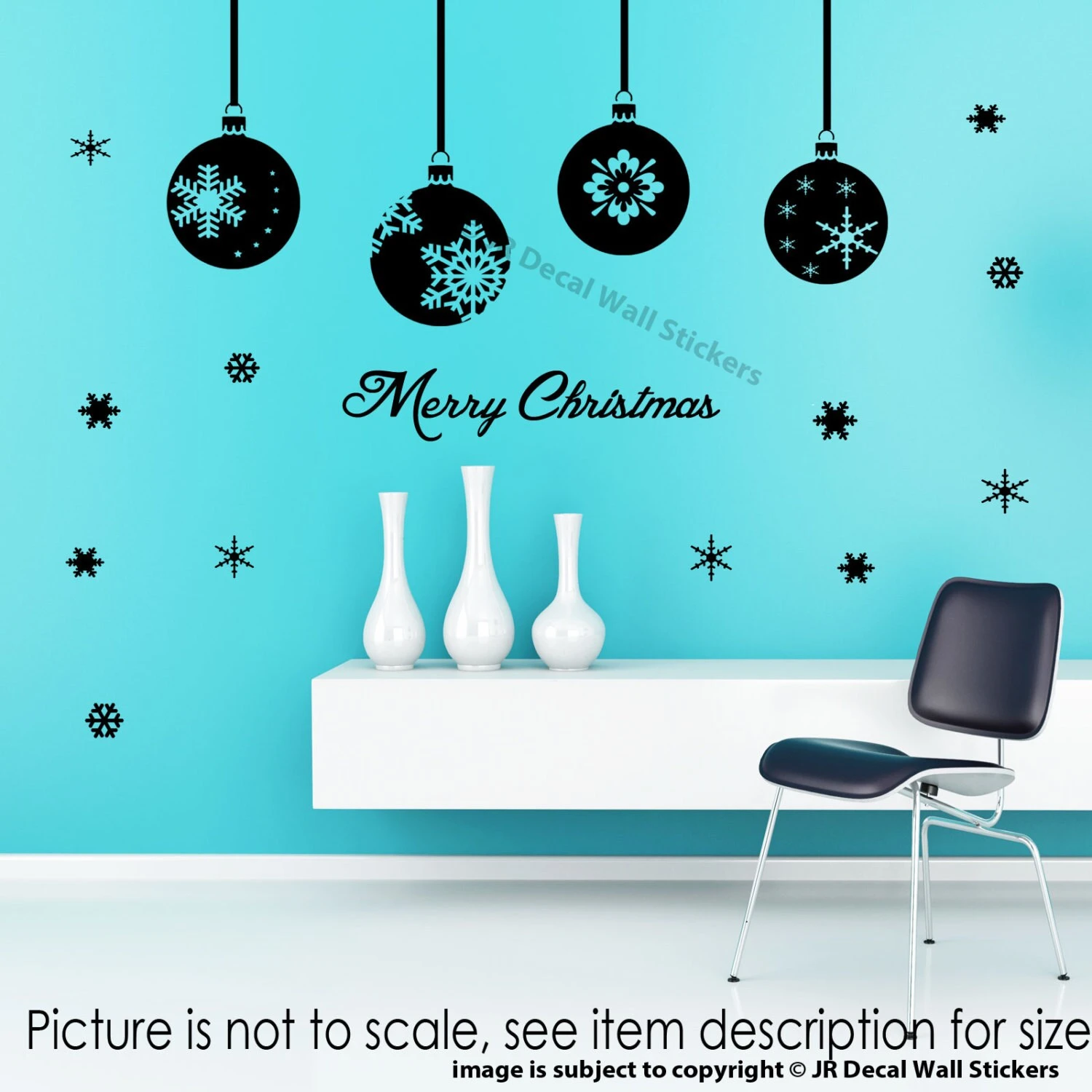 Xmas Shop Window Decor Merry Christmas Tree Baubles Wall Sticker snowflake Decal with your chosen size and colour.