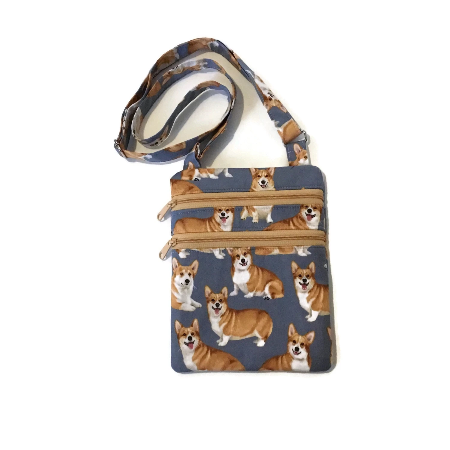 Celebrate your love of dogs with this Corgi fabric crossbody purse.