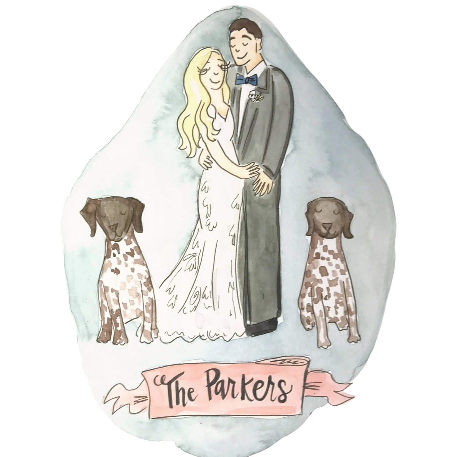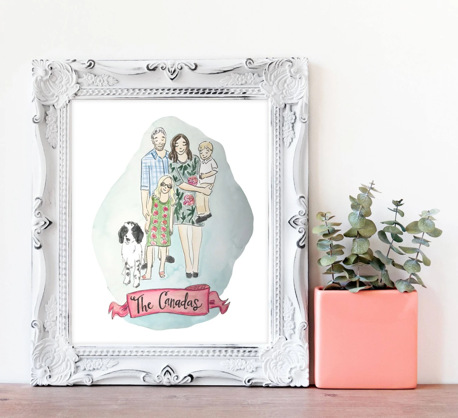 This is a one of a kind, watercolor family portrait with floral border. I will create a custom family painting that can include both people and pets. This makes a great wedding or anniversary gift for couples and large families alike!