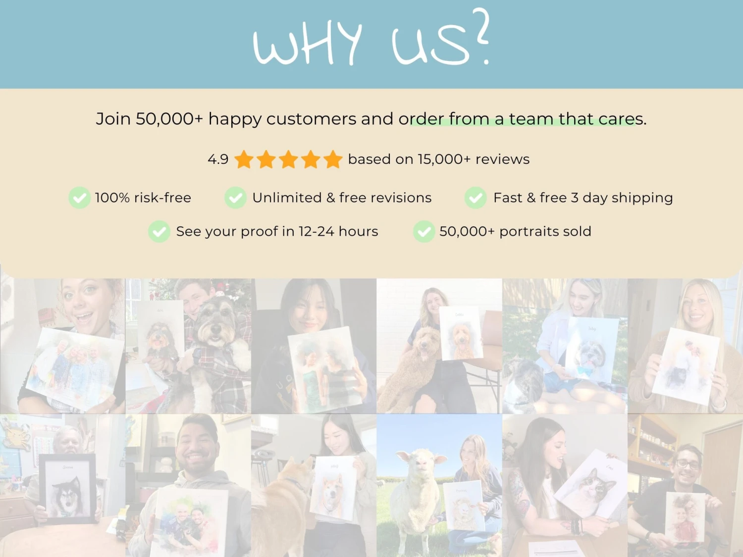 ✅ 100% risk-free process with a personalized preview of your portrait