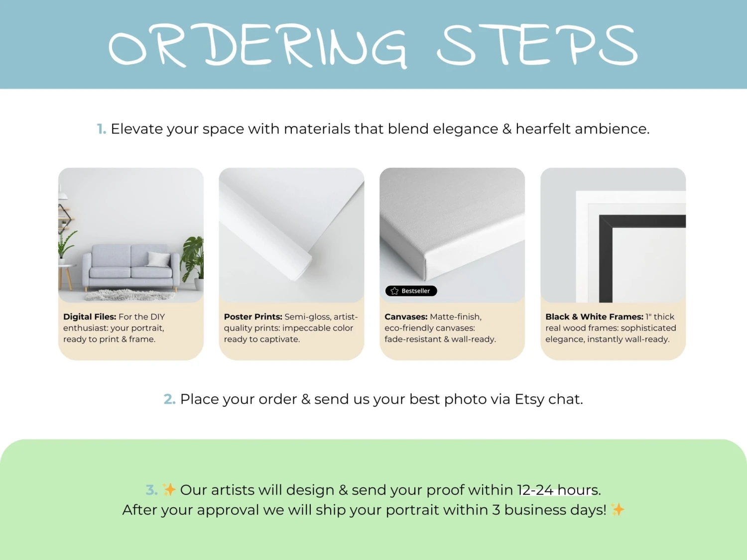 Step 1: Place your order & send us your best photo on Etsy.