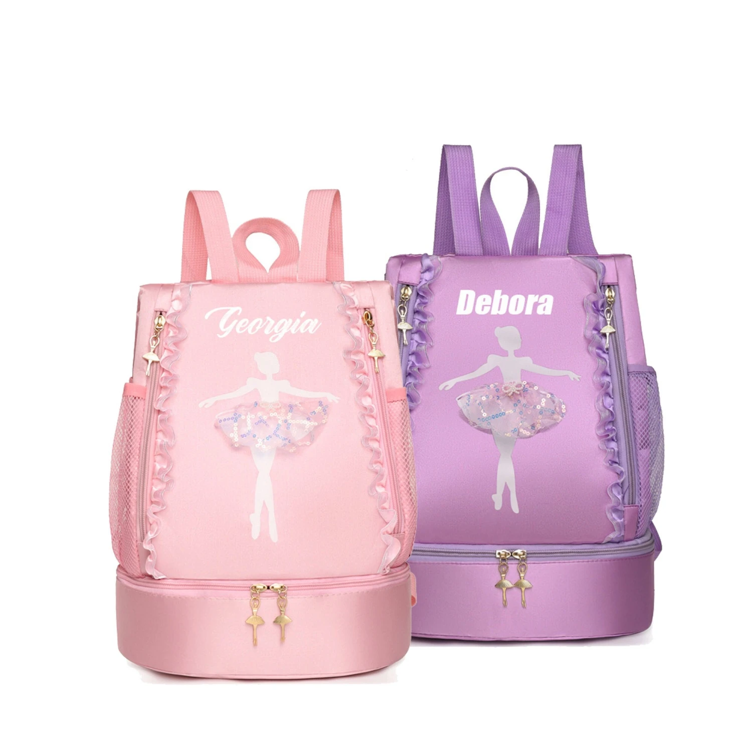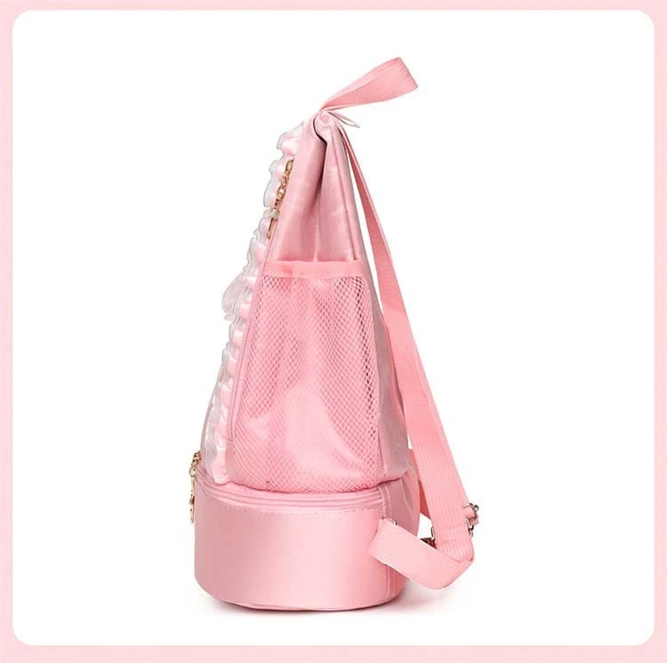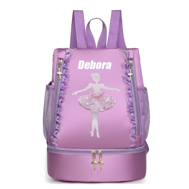 Girls dance bag with independent shoe compartment, the main bag opens from the side, suitable for little girls aged 3-12