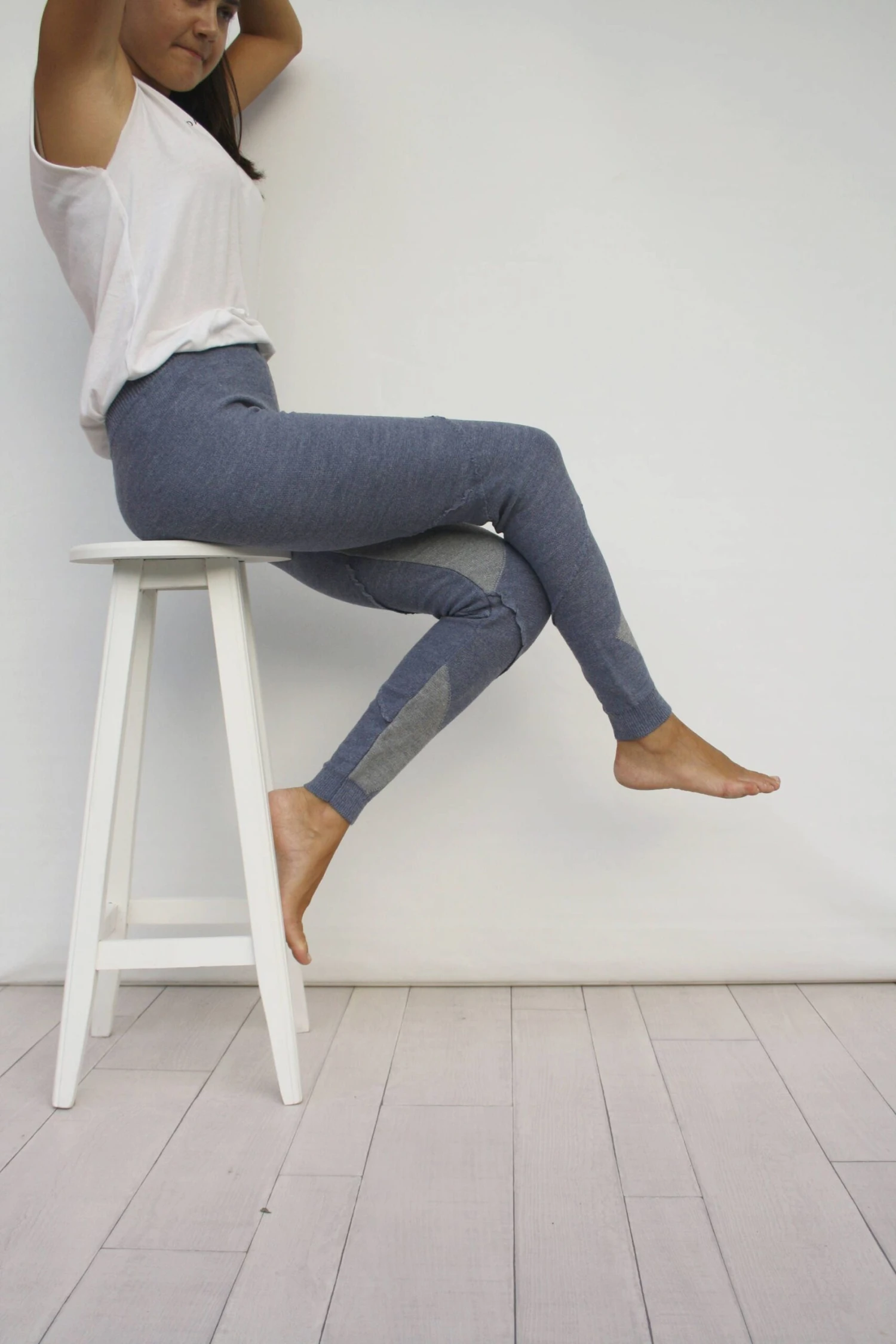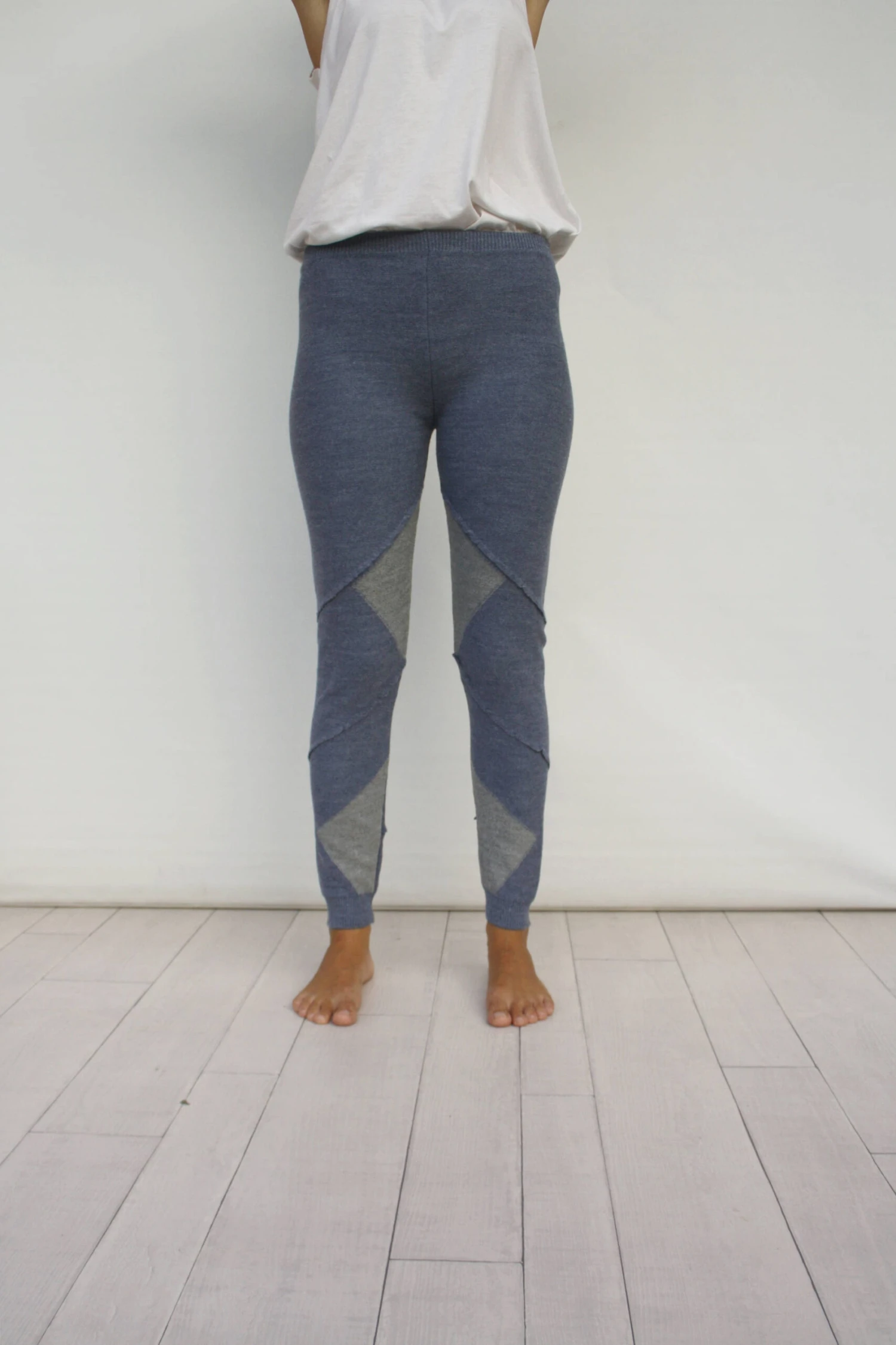 Denim Blue Knitted Leggings with Gray Triangle Pattern, Leggings for Women, Clothing Gift, Christmas Gifts, Gift for Her, Gift for Women, Outdoor Wear.
