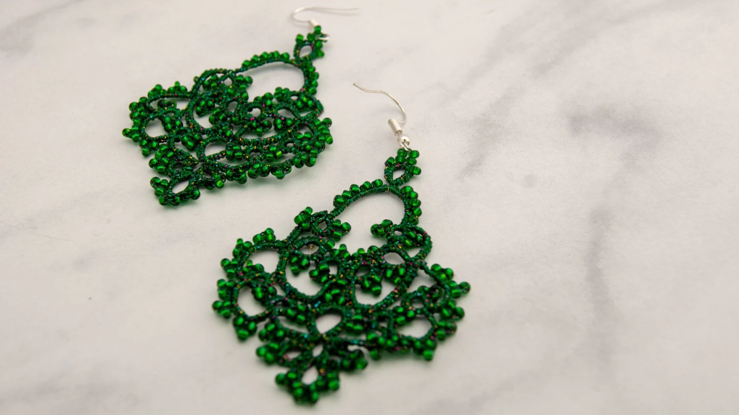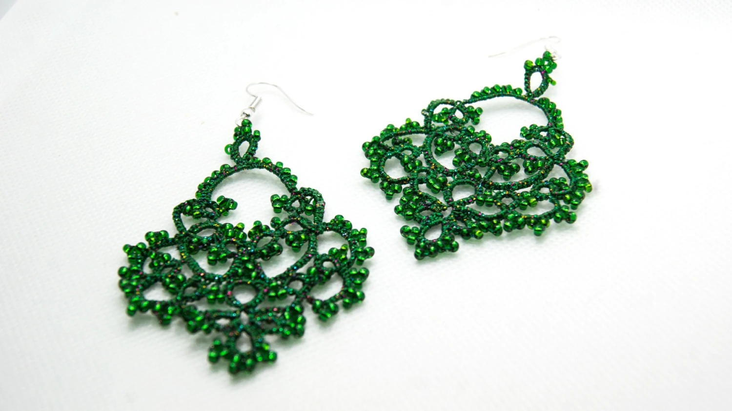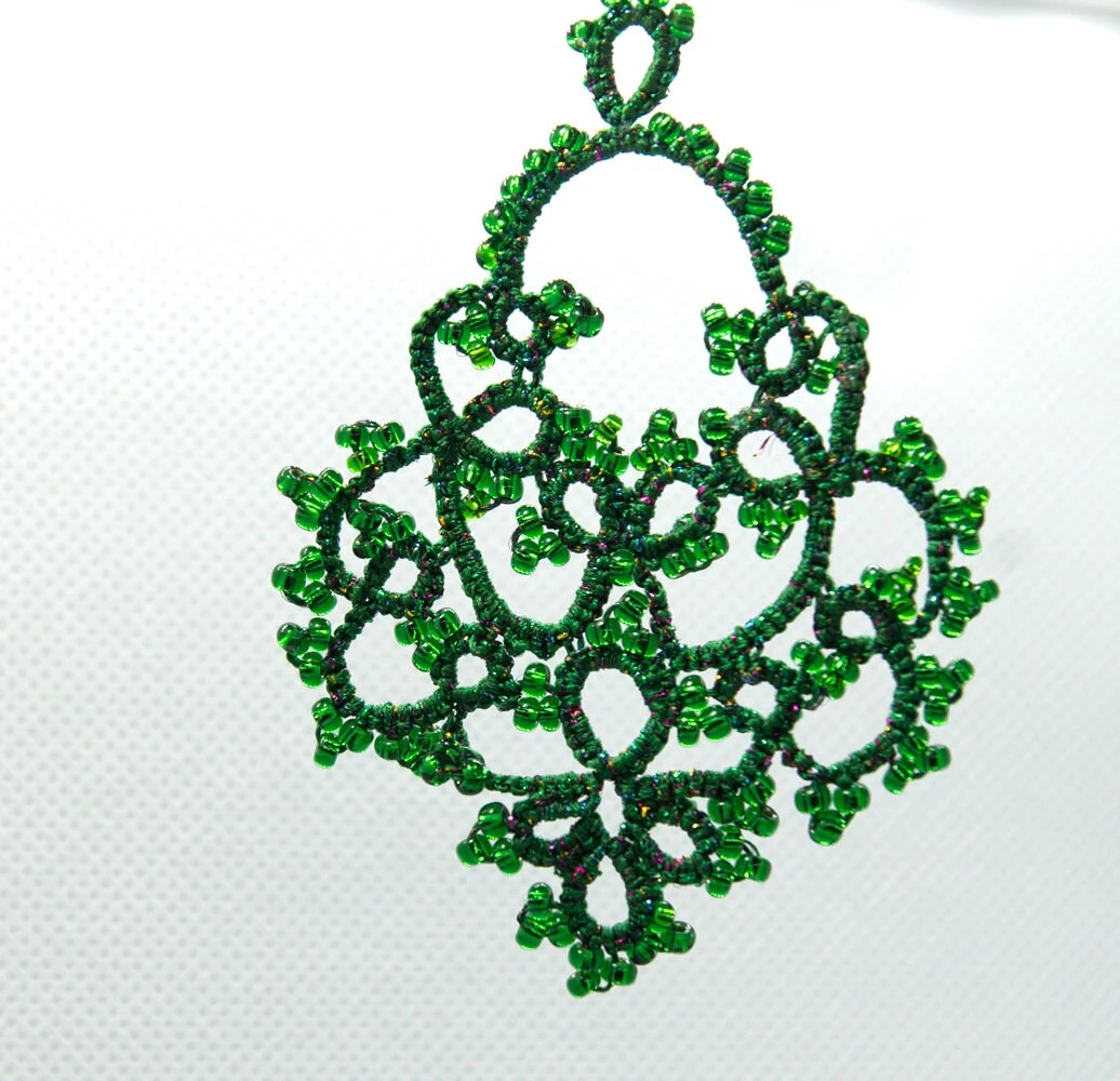 Unique green rainbow-tatted lace earrings are a lovely gift for women. Extremely lightweight beaded earrings can be a delicate accent for any occasion! In this lovely emerald green color, these earrings can be a perfect Christmas gift for a girlfriend, wife, or yourself.