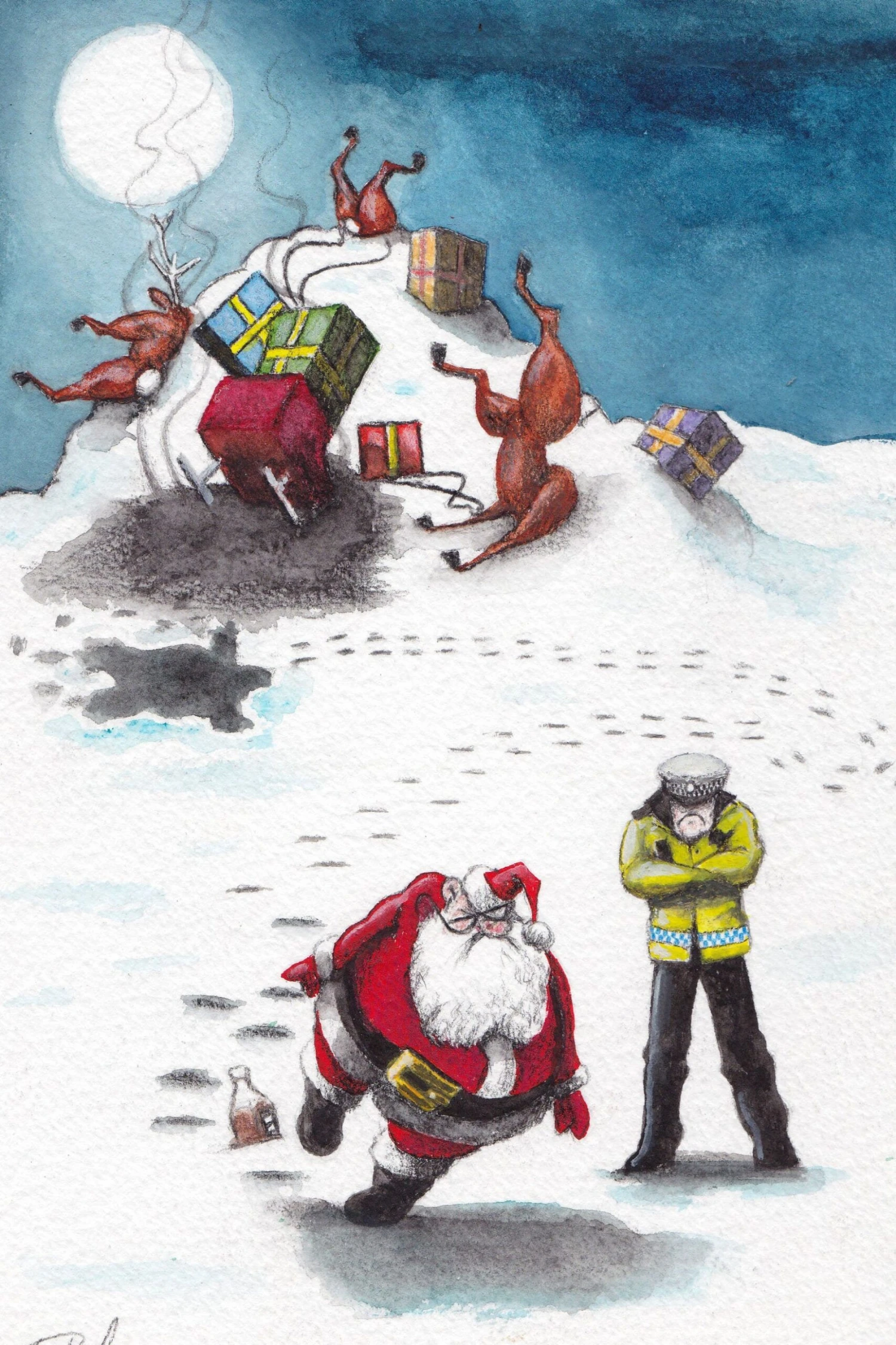 Original, alternative designed Christmas Card by me. There are five designs. £3 each or £10 for all five. For those who like Christmas laugh.