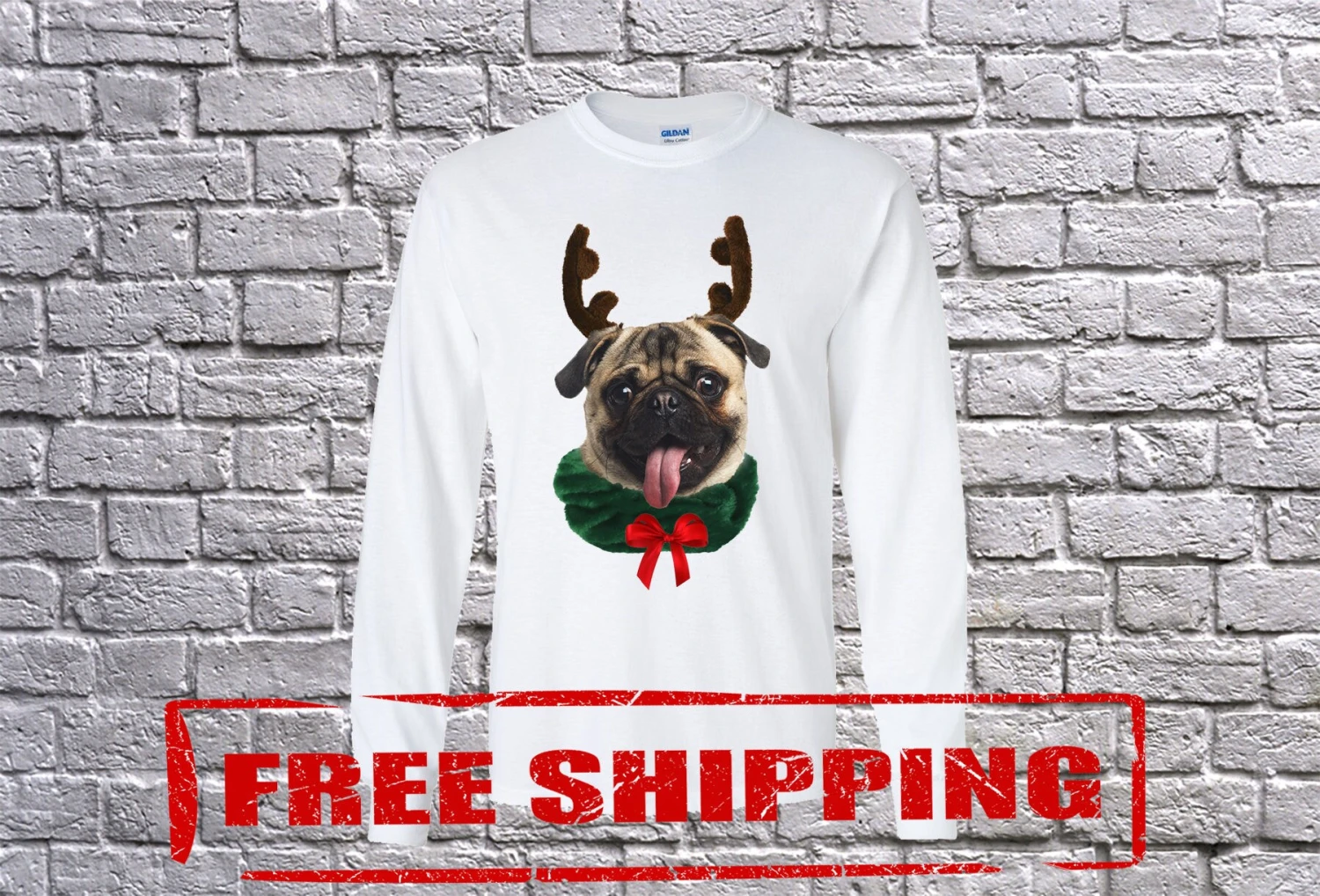 Funny Pug Ugly Christmas White Long Sleeve And T-shirt, Pug Funny Christmas Shirt, PUG Longsleeve, Pug Sweater, Pug Christmas
