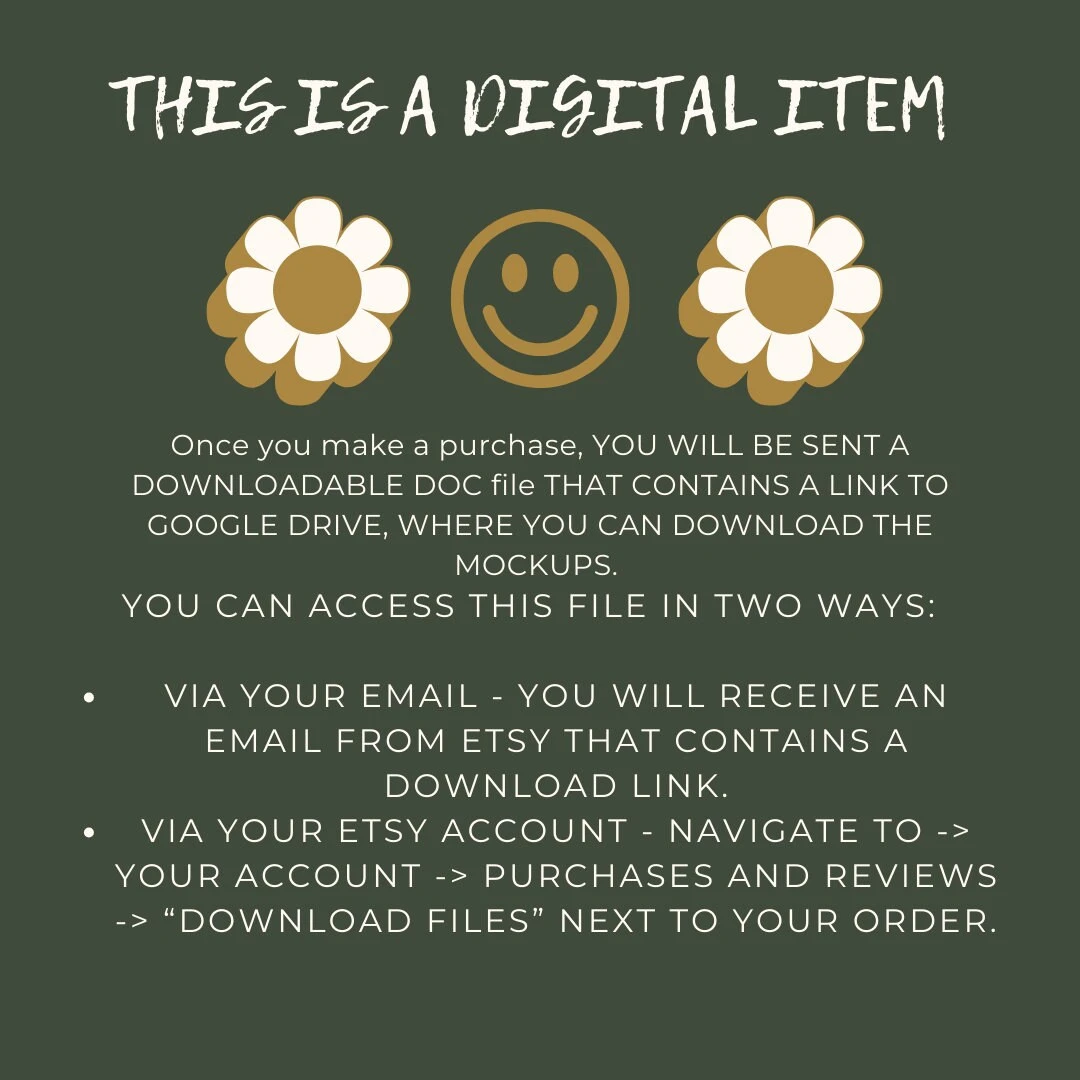 **PLEASE NOTE YOU WILL RECIEVE A DOWNLOADABLE FILE THAT CONTAINS A LINK TO GOOGLE DRIVE WHERE YOU CAN DOWNLOAD THE MOCKUP**