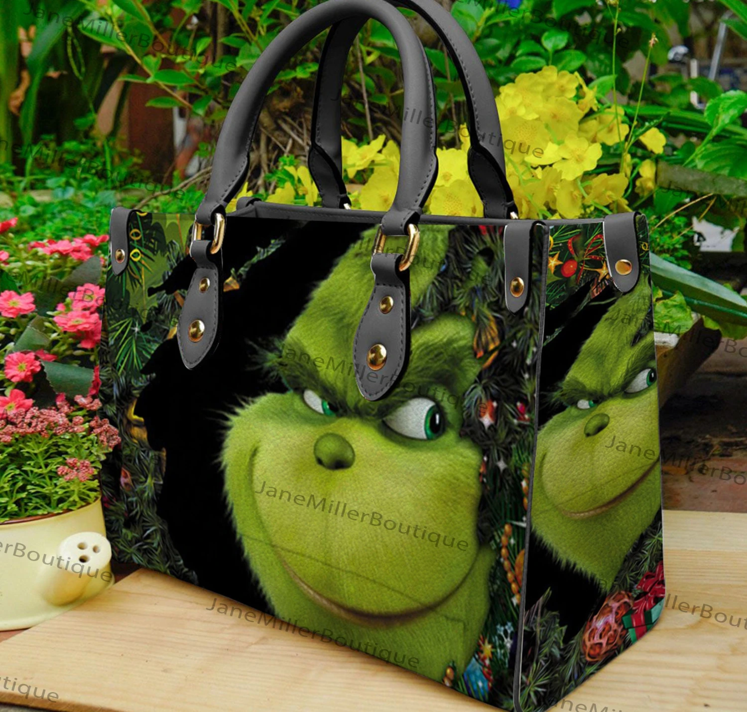 Grinch Christmas Leather Bag, Grinch Lover Handbag, Custom Leather Bag, Woman Handbag, Personalized Bag, Shopping Bag, Handmade Bag