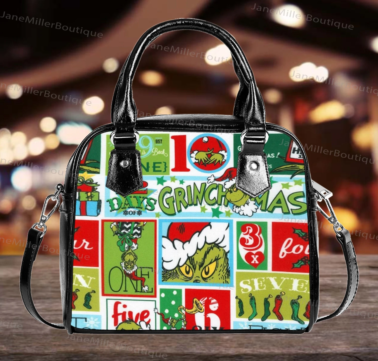 Grinch Christmas Leather Bag, Grinch Lover Handbag, Custom Leather Bag, Woman Shoulder Bag, Crossbody Bag, Shopping Bag, Handmade Bag