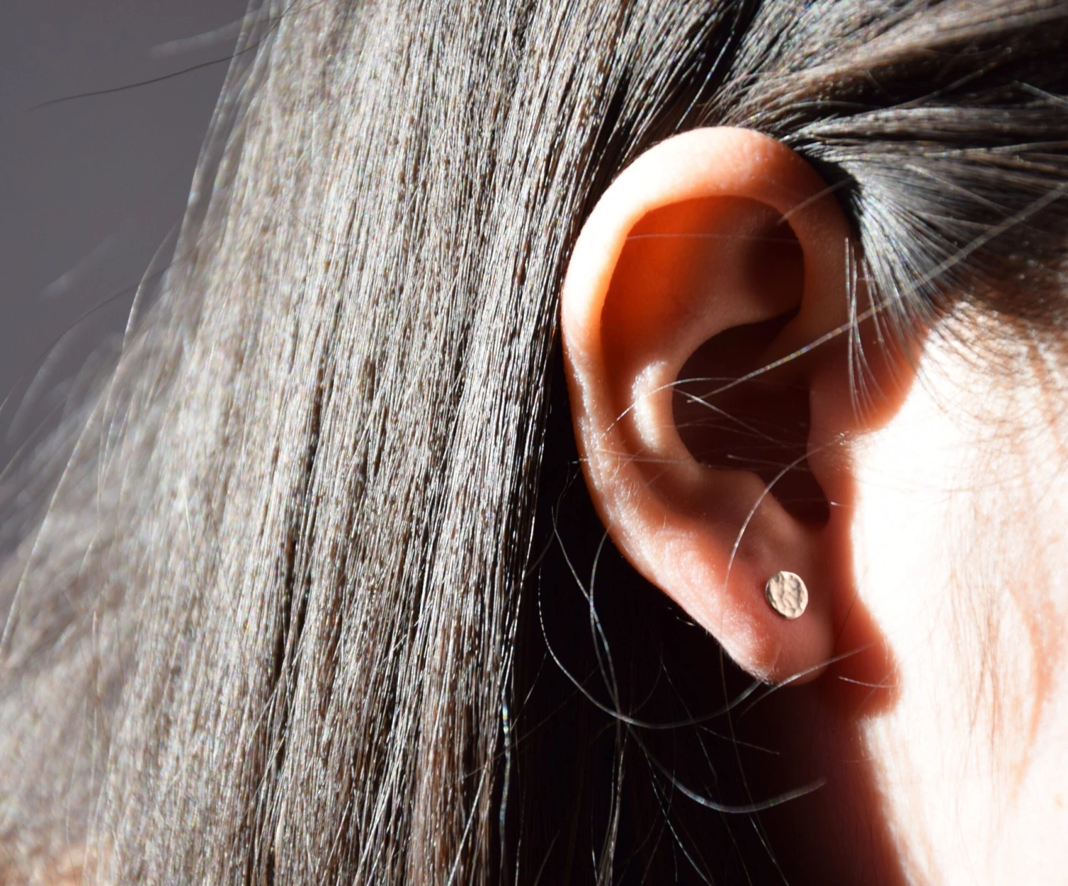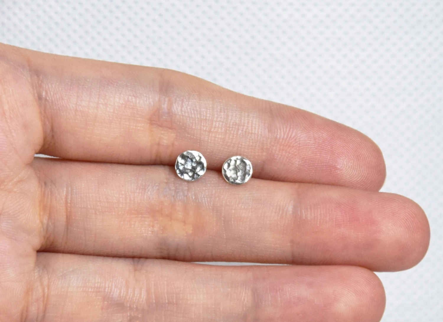 Hammered Square/ Round Disc Studs – Handmade Simple Earrings – Silver Studs