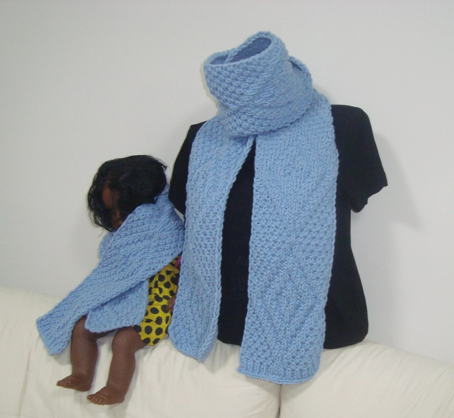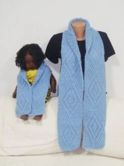 Hand Knit Blue Scarf Women or Men Kids Matching Scarves Dad and Son Mom and Boys Gift Set of 2 Christmas Gifts for sale