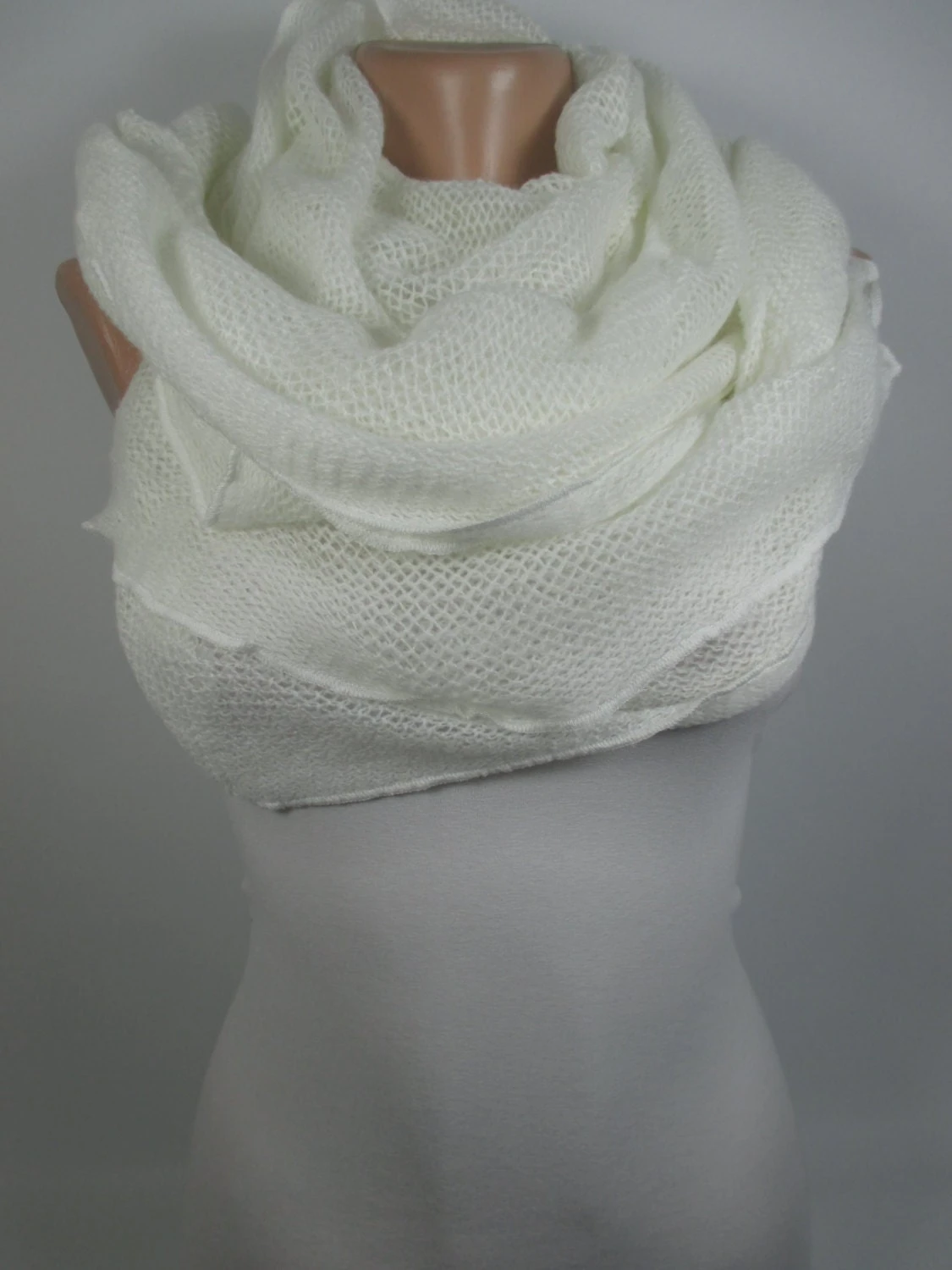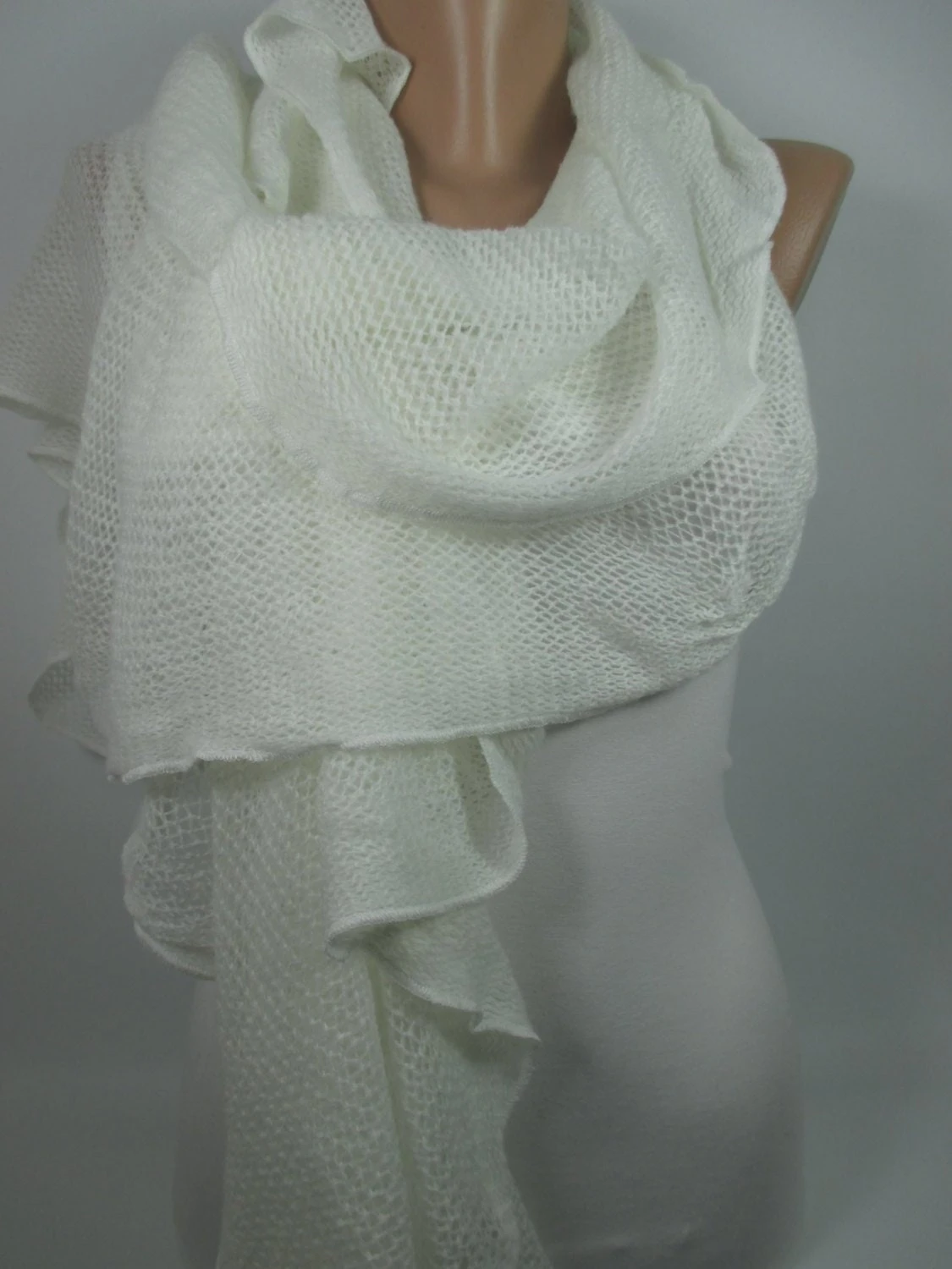 Cream Scarf Ruffle Scarf Knitted Cowl Scarf Warm Scarf Shawl Women Fashion Accessories Cozy Scarf Gift Ideas For Her Christmas Gift Ideas Unique Gift For Women Wedding Scarf Bridesmaids Gift Bridal Accessories Bridal Shower Party Scarf MELSCARF
