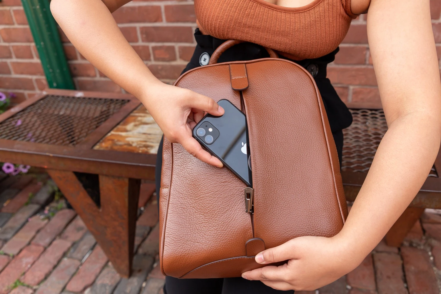 Compact leather backpack for women. This is the perfect gift for her. Our Leather Backpack Purse will help you carry your laptop and accessories while elevating your style and elegance! It also fits paper, documents, and other personal accessories you might want to carry around!