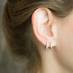 Christmas Sale, Pearl Ear Stud Earrings Cute Dangling Charm, Gold Plated Over Sterling Silver