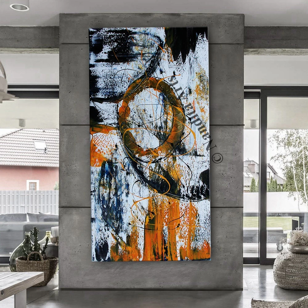Large Abstract Painting, Yellow Minimal Wall Art, Living Room Décor, Colorful Modern Abstract Painting, Christmas Art Décor