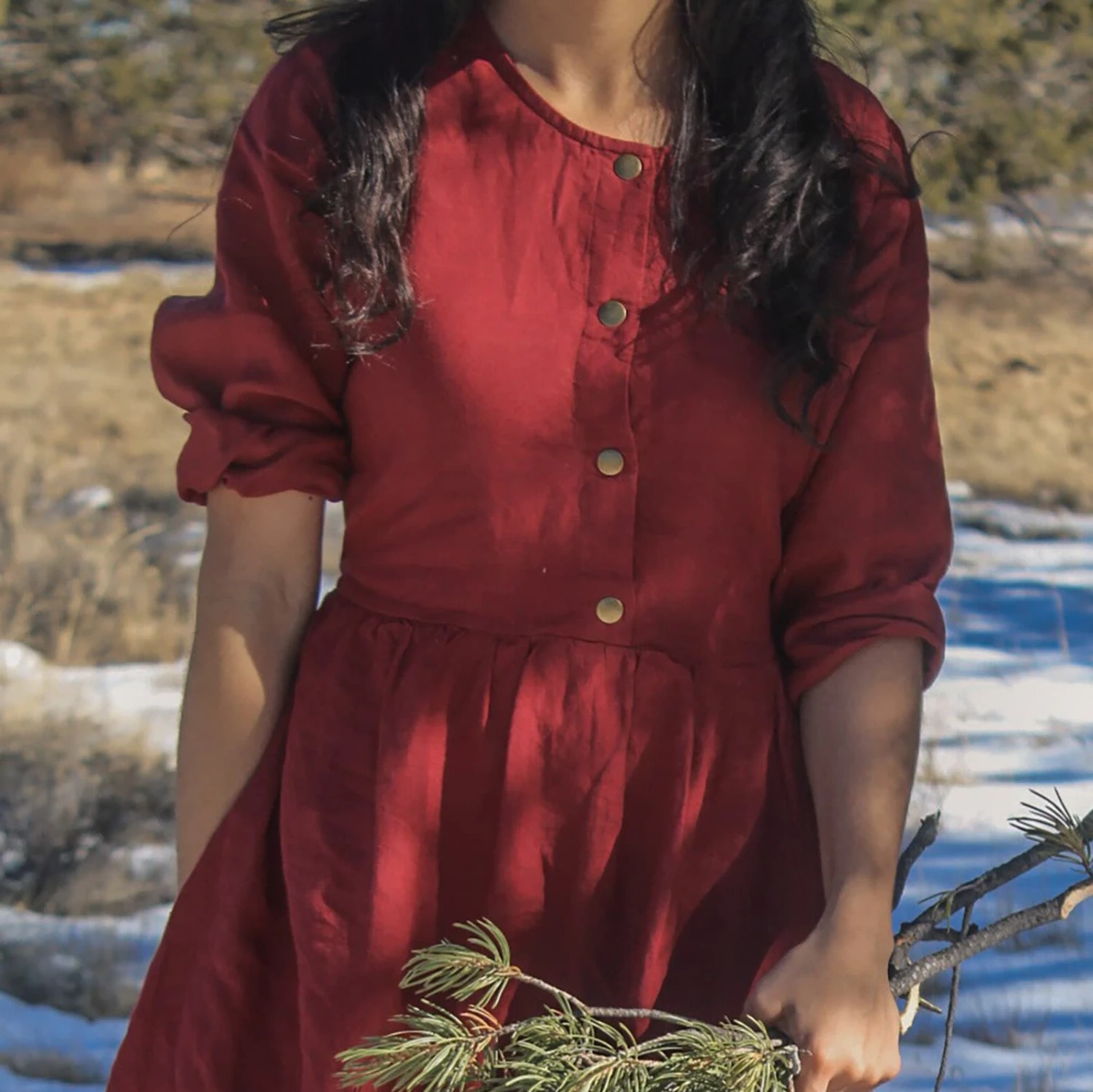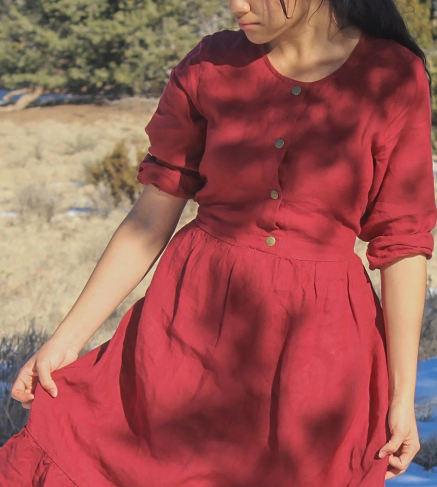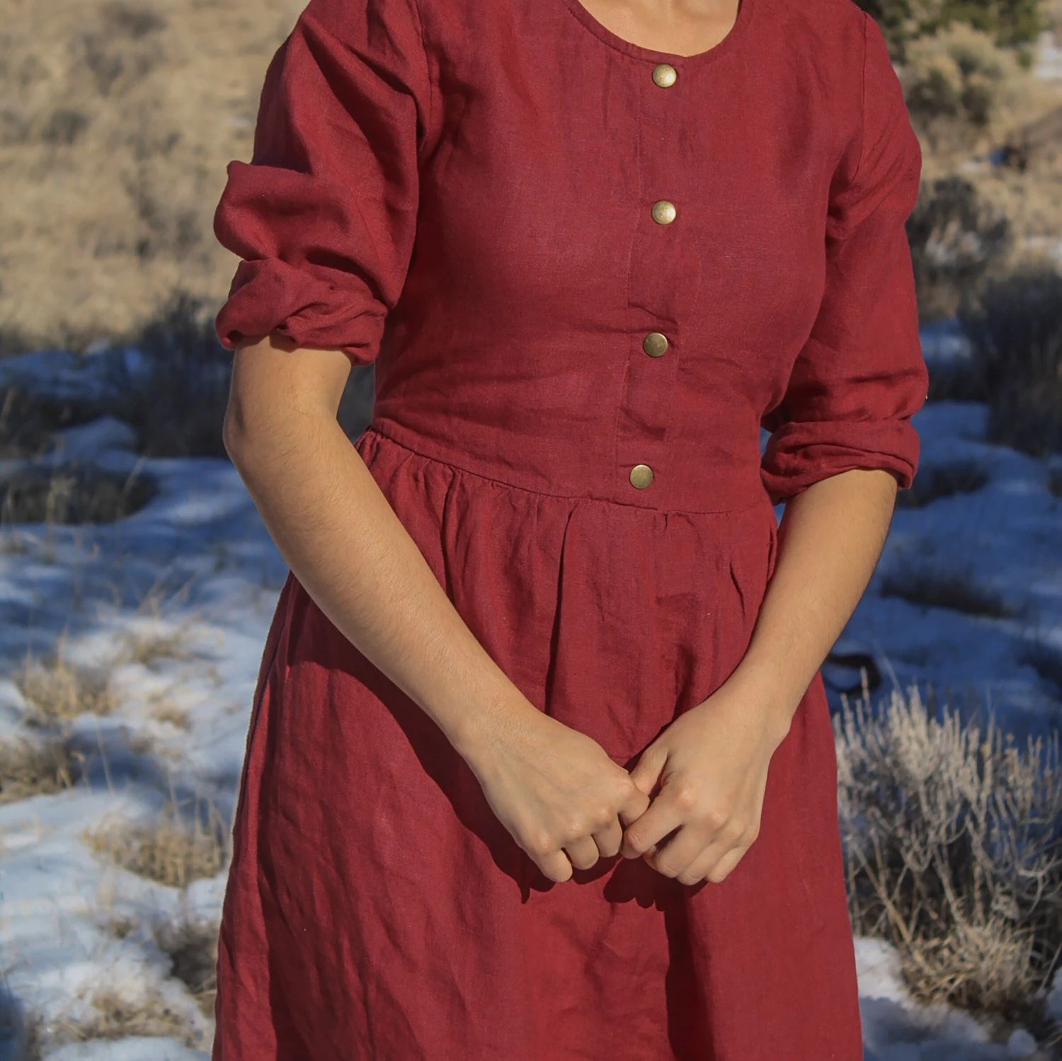 Linen Dress With Snaps, Linen Long Dress With Back Tie, DOWNEY, Christmas Gift For Her