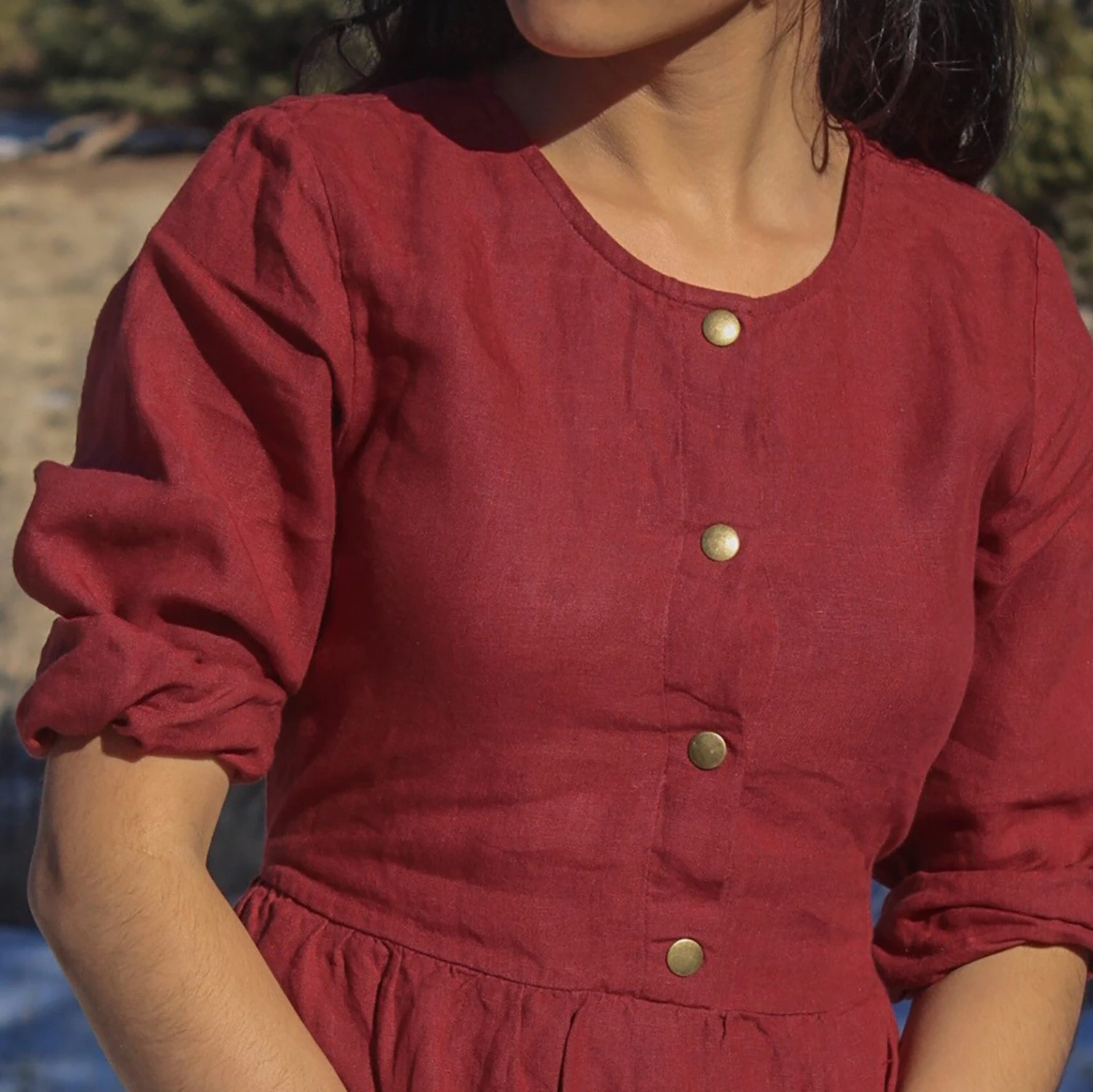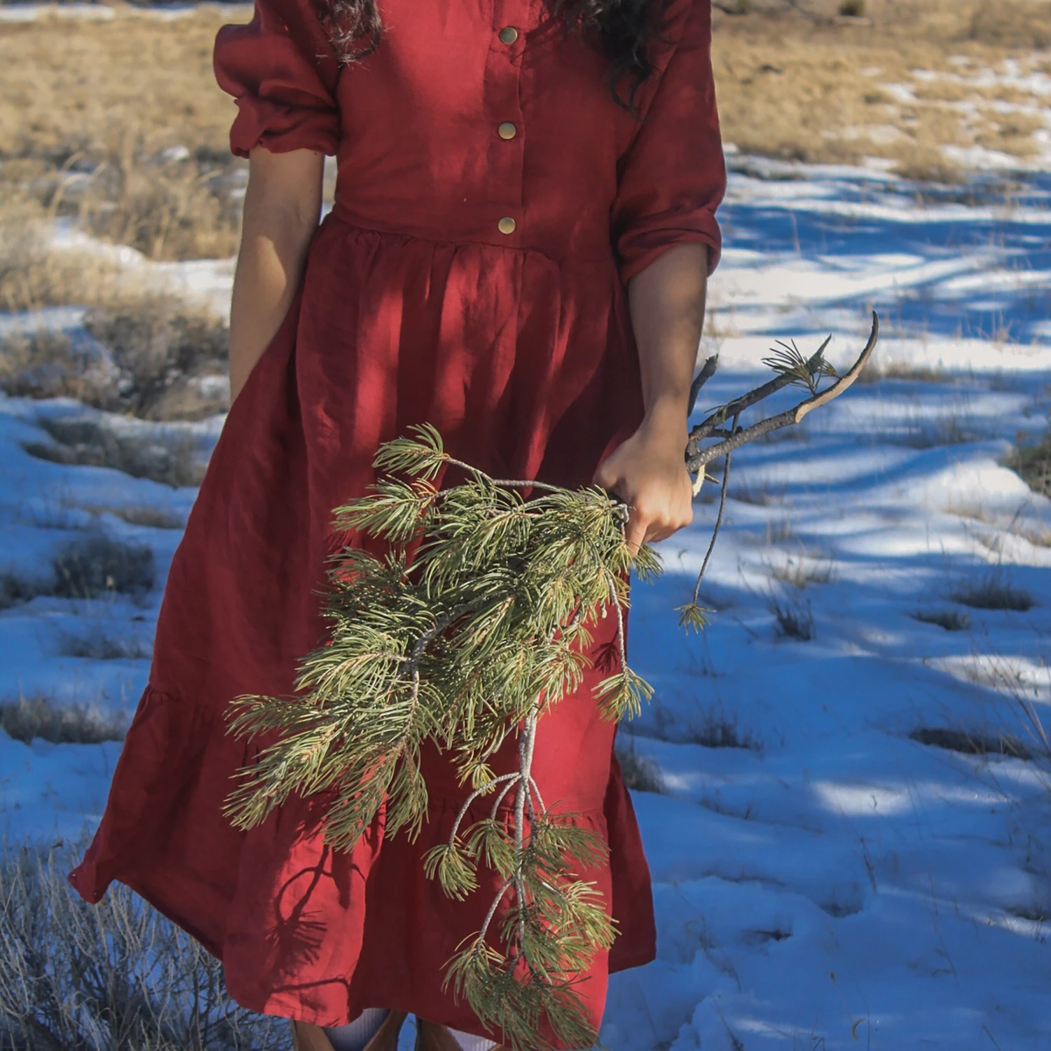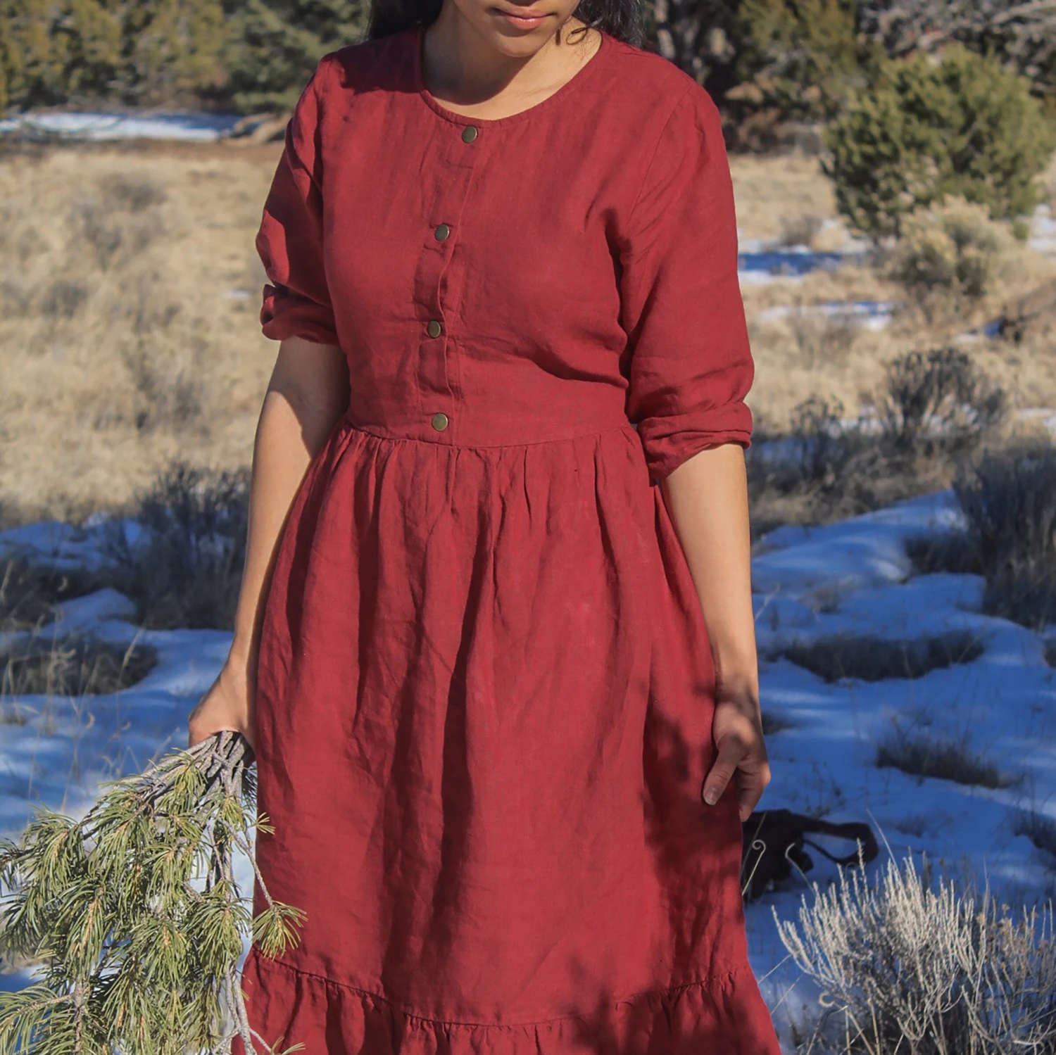 Linen Dress With Snaps, Linen Long Dress With Back Tie, DOWNEY, Christmas Gift For Her