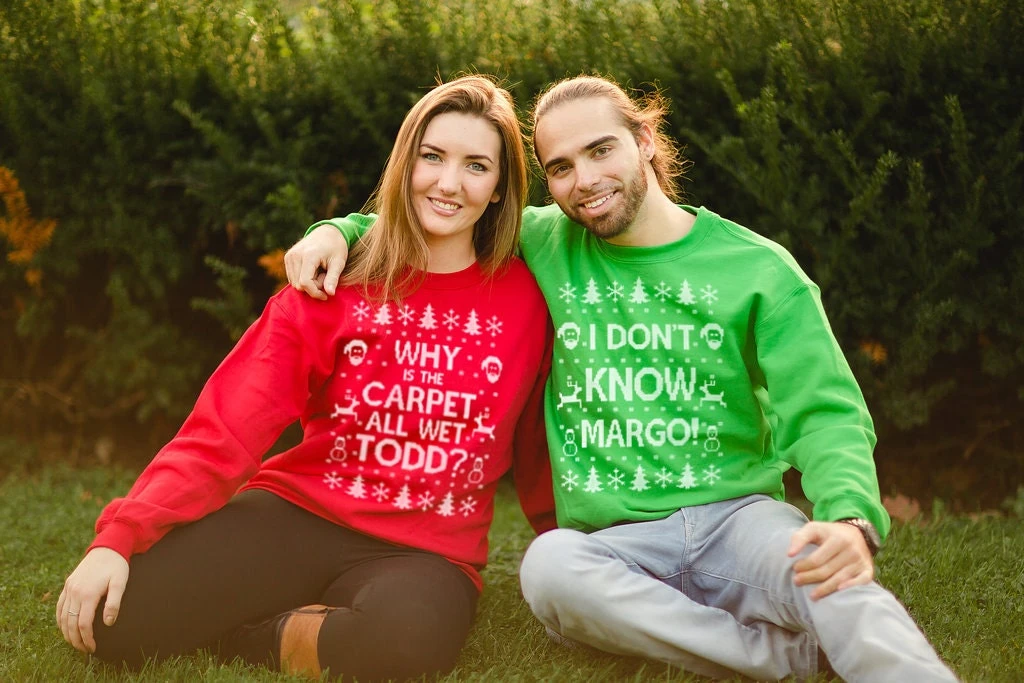 Matching Christmas Shirts – I Don’t Know Margo and Why is the Carpet All Wet Todd – Unisex Sweatshirts – SET OF 2 – Items 2724 & 2725
