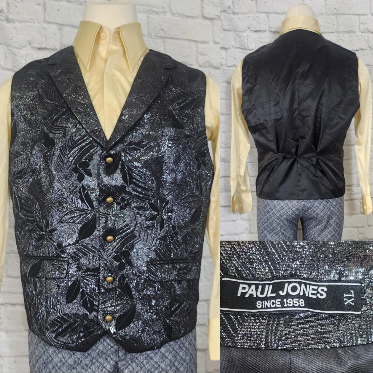 Be the first to review “Mens Black Silver Lame Vest Holiday Christmas Shiny Front Solid Black Back Size XL” Cancel reply