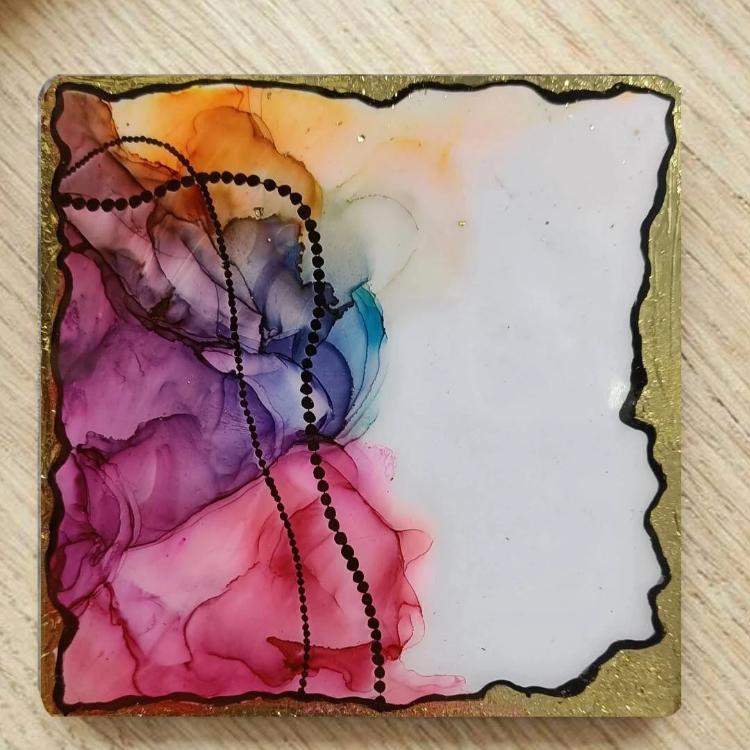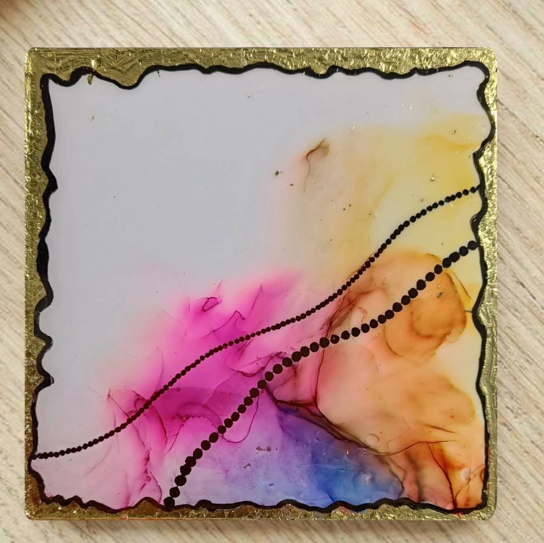 Discover the enchanting world of color and creativity with our Colorful Mini Pieces Set of 4. Crafted with love and passion, these mesmerizing artworks are made using premium MDF, vibrant alcohol inks, luxurious gold leaf accents, and coated with resin for a glossy finish. Versatile in purpose, these mini masterpieces can elevate your decor as luxury coasters or be showcased as stunning wall art, adding a touch of elegance and charm to any space.