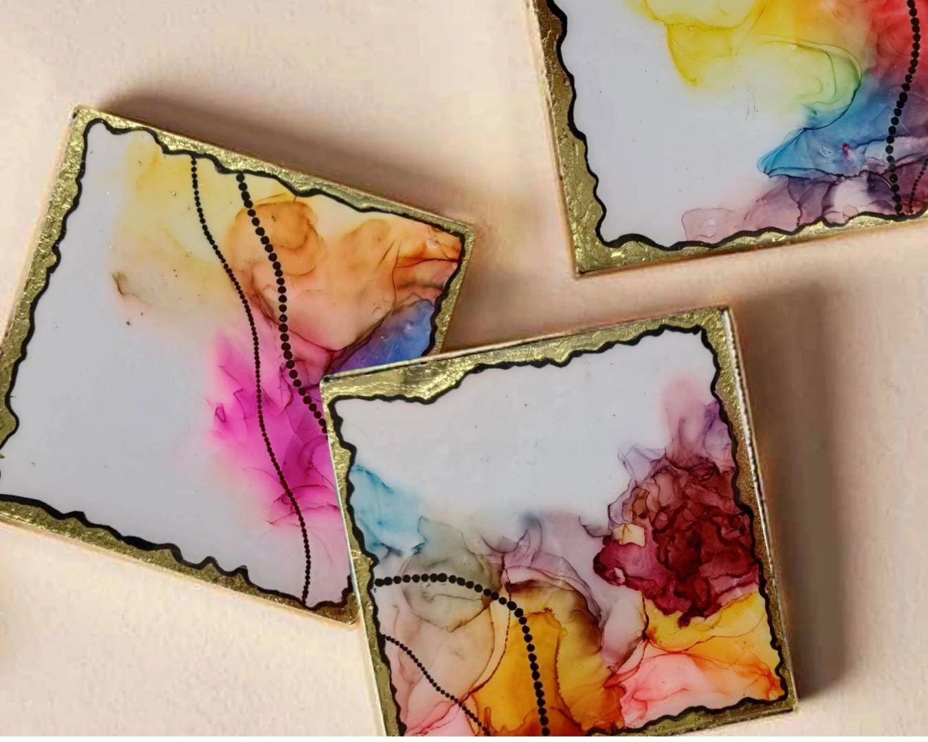 Be the first to review “Mini Art Pieces- Set Of 4 |Resin + Colorful Abstract Alcohol Ink Art Coasters |Gold Leaf Accents | Luxury Home Decor,handmade Christmas Gift” Cancel reply